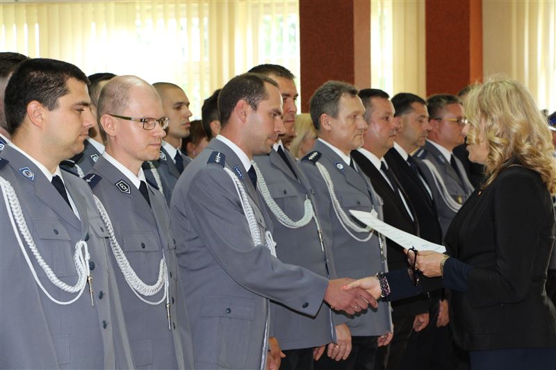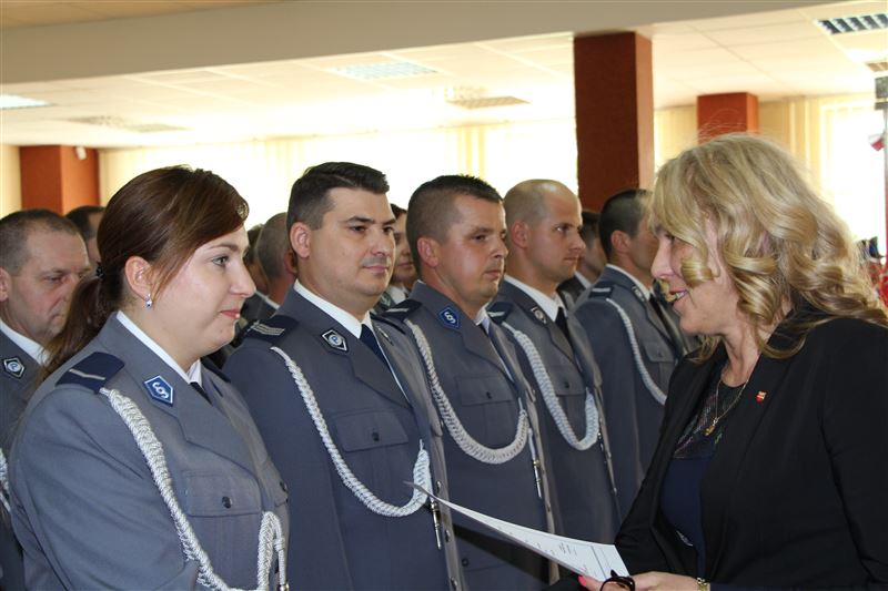 Samorząd powiatowy, wśród licznie przybyłych gości, w tym wójtów, burmistrza, przedstawicieli instytucji i służb, reprezentowała Jolanta Gonta, starosta sochaczewski, Tadeusz Głuchowski, wicestarosta oraz Andrzej Kierzkowski, przewodniczący Rady Powiatu. Starosta wraz z komendantem policji wręczyli awansowanym policjantom akty mianowania na wyższe stopnie policyjne. Otrzymało je 75 funkcjonariuszy z sochaczewskiej komendy i podległych posterunków. Funkcjonariusze wysłuchali podziękowań i słów uznania dla codziennych trudów służby oraz życzeń dalszych sukcesów zawodowych. Nie zabrakło ukłonów w stronę pracowników cywilnych sochaczewskiej komendy, a także rodzin funkcjonariuszy. Oprócz awansów, dwóch policjantów odebrało z rąk mł. insp. Michała Safjańskiego dyplomy za szczególne osiągnięcia w służbie.
