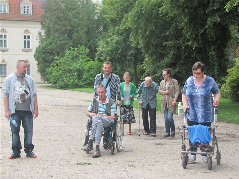 w Ośrodku "Stacja Nieborów". Dzięki korzystnej pogodzie, promieni słoneczka zwiedzaliśmy piękny park w Nieborowie, zachowany w stylu barokowym, w którym mogliśmy podziwiać uroki przyrody i kompozycje kwiatowe. Niesamowitym powodzeniem cieszyły się również dwa zbiorniki wodne na terenie parku. Największą radość wśród naszych Pensjonariuszy wzbudziły łabędzie pływające na tafli jednego ze stawów. Piękne rękodzieła Majoliki Nieborowskiej księcia Michała Radziewiłła, pobudziły wyobraźnie Pensjonariuszy oraz wzbudziły zachwyt z prezentowanych przedmiotów.