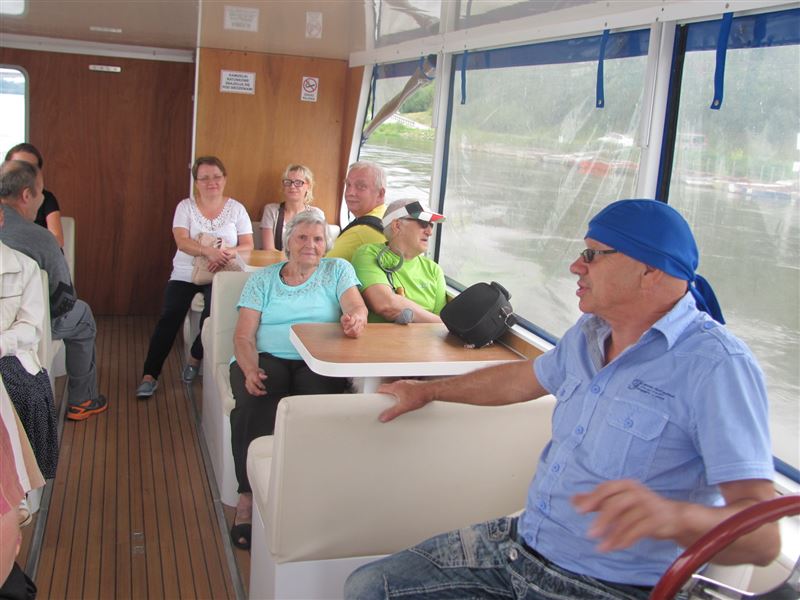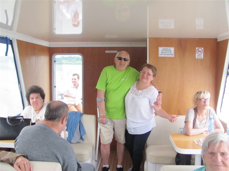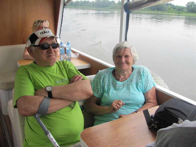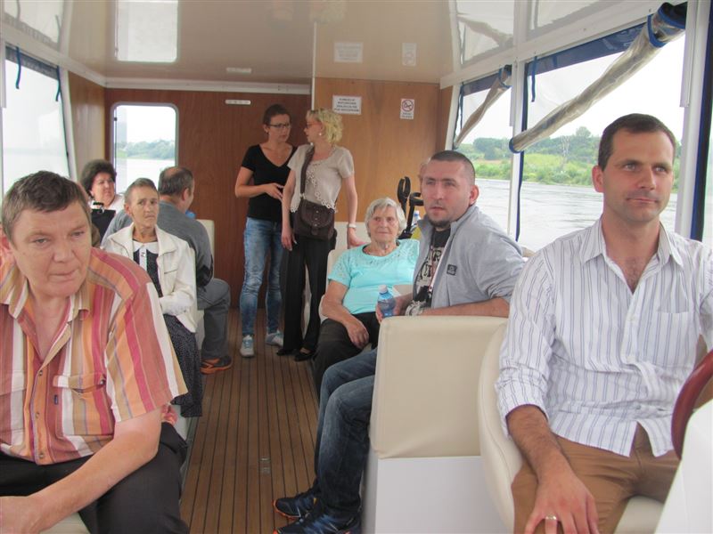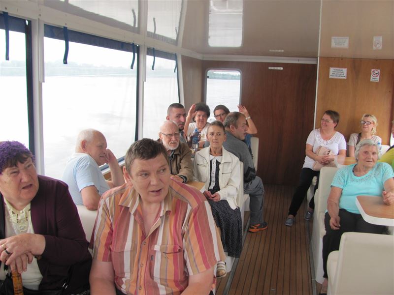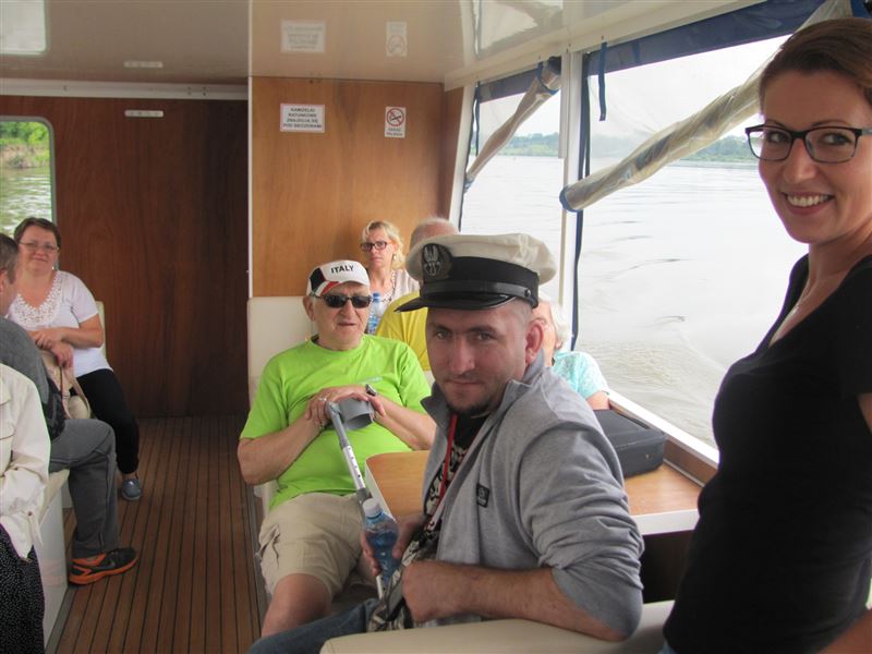 W czwartek, 4 sierpnia br. mieszkańcy Domu Pomocy Społecznej w Młodzieszynie, udali się w rejs po Wiśle w niedaleko położonym Wyszogrodzie. Aura początkowo nie sprzyjała, ale wiara w udaną pogodę była tak silna, że słońce świeciło cały czas. Podczas godzinnego rejsu, pan kapitan umilał czas wszystkim pasażerom puszczając tematyczne piosenki i szanty. Widoki, które rozpościerały się na wysoko wzniesionych nadbrzeżach Wisły pobudzały nasze myśli. Relaksujący szum wody, wzbogacony trzepotem skrzydeł kormoranów dał prawdziwie wakacyjną aurę. Czuliśmy się jak na Mazurskich jeziorach.