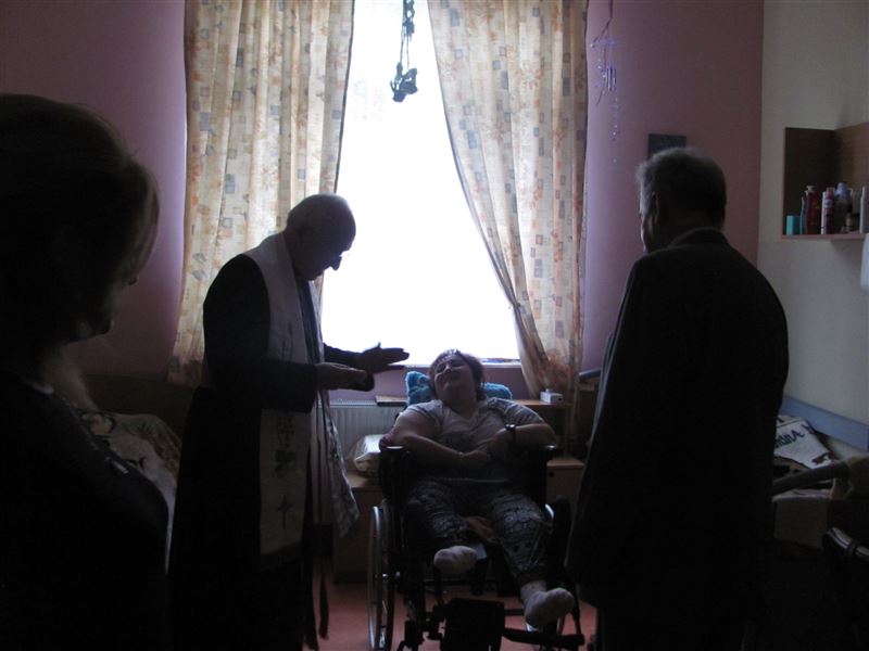 Jego Ekscelencja udzielił sakramentu Eucharystii mieszkańcom, którym choroba uniemożliwiła uczestnictwo we Mszy świętej w ich pokojach.