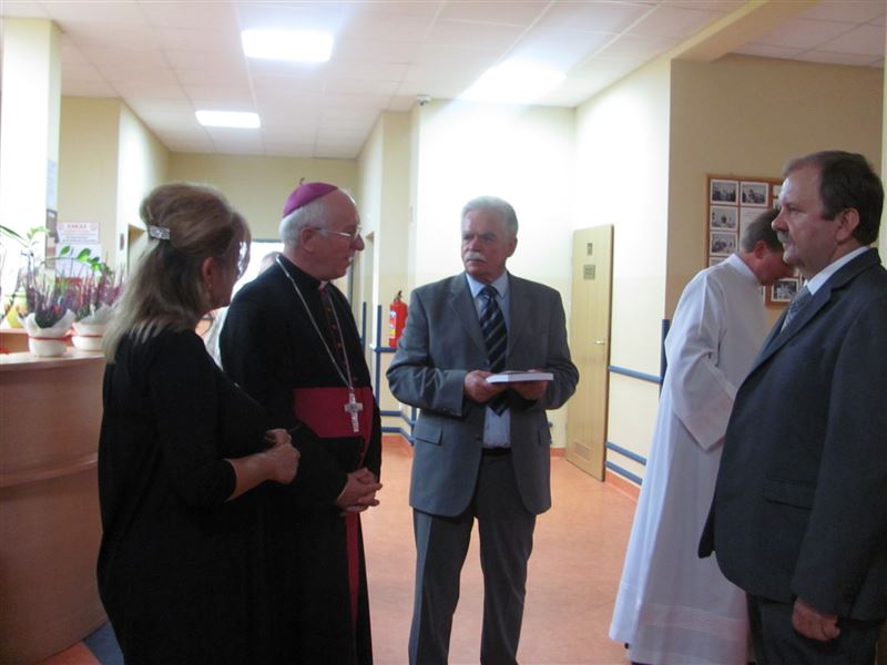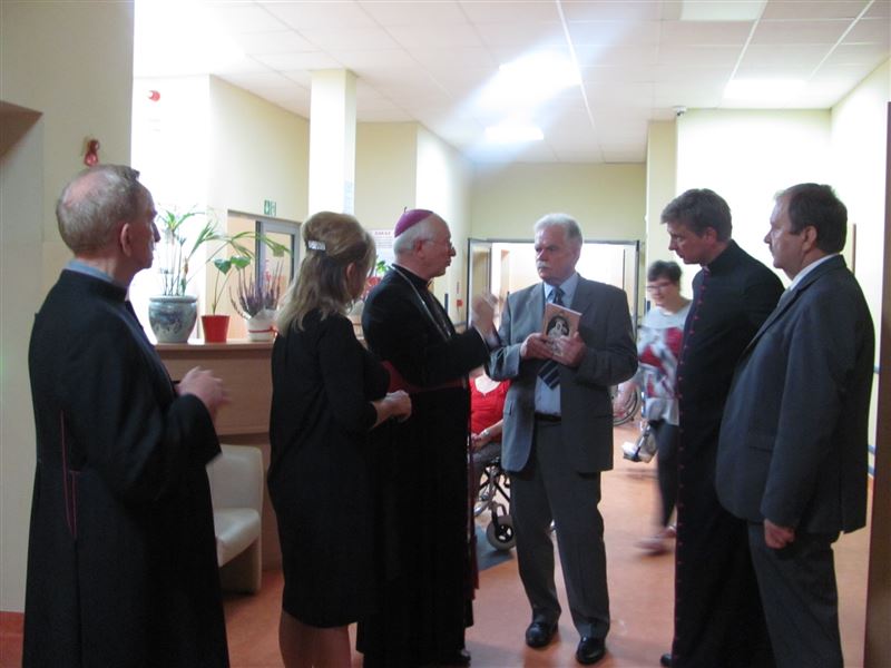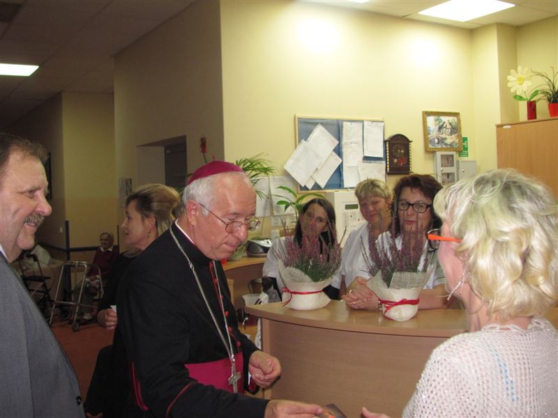 Bo jak powiedział należy zadbać i pamiętać, że to miejsce do którego przybył z wizytą to właśnie Dom – tworzą go Mieszkańcy a pracownicy i Dyrekcja dbają,aby Mieszkańcy czuli się tu dobrze, komfortowo, po prostu ”jak u siebie”. Dom to prawdziwe miejsce, a nie tylko słowo. Dom, w którym człowiek jest najważniejszy, a godność człowieka jest zawsze priorytetem. Dom, gdzie chorzy, starają się godnie żyć i nieść krzyż swojego cierpienia, predysponowany do niesienia pomocy i całodobowej opieki, którą zapewniają pełni empatii pracownicy. Wszyscy zgromadzeni słuchali z uwagą słów, które kierował do nas ks Biskup.