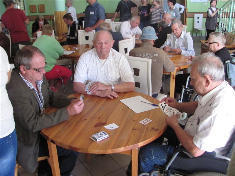 Troje mieszkańców Domu Pomocy Społecznej w Młodzieszynie brało udział w turnieju karcianym organizowanym przez Dom Pomocy Społecznej w Szczutowie. Na sali gier konkurowało ze sobą 15 drużyn. Walka była zaciekła. Drużyny były trzyosobowe. Zwycięzca każdej drużyny przechodził do kolejnego etapu rozgrywek. Tym oto sposobem nasz Mieszkaniec, p. Andrzej Kwoka, przeszedł do półfinałowych rozgrywek. Na tym etapie niestety karty nie sprzyjały, przez co nie udało się wejść do ścisłej czołówki turnieju. Inni uczestnicy z naszego Domu, panowie Adam Pakuła i Ireneusz Kozłowski, musieli ustąpić po pierwszej rozgrywce. Mimo to dla nas są zwycięzcami.