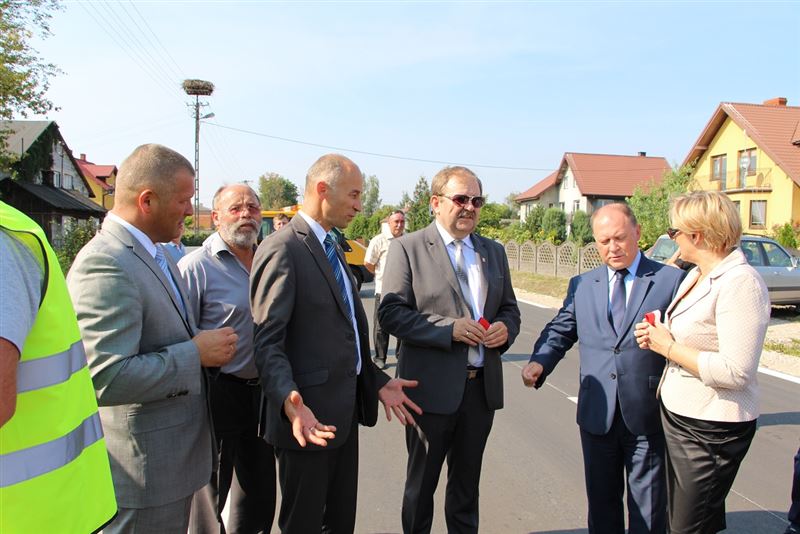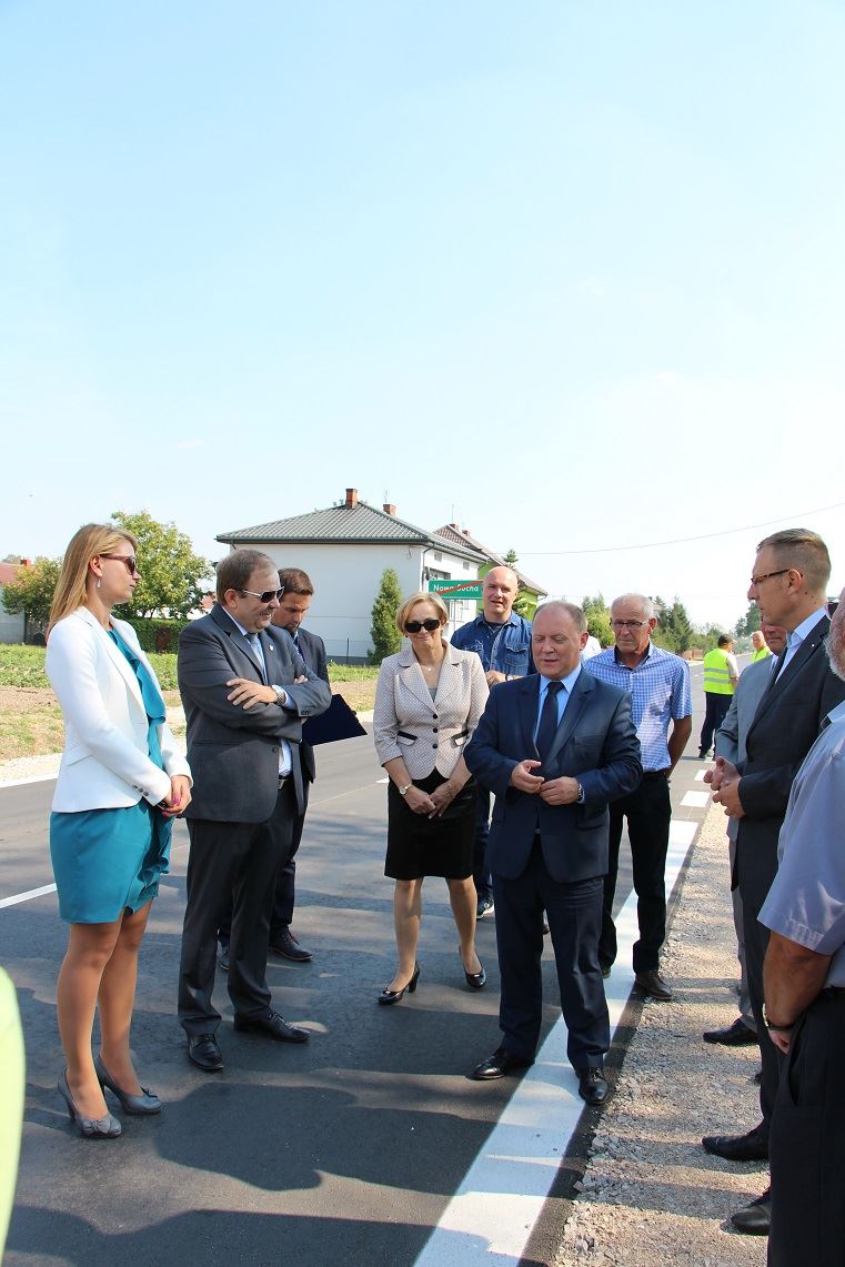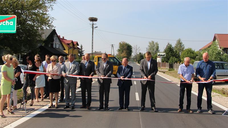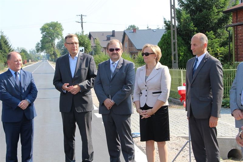 Symboliczną wstęgę na nowo oddanej do użytku drodze przecinali – poseł Maciej Małecki, wojewoda Zdzisław Sipiera, wicestarosta Tadeusz Głuchowski, wójt Maciej Mońka, Mariusz Mikulski - przewodniczący Rady Gminy Nowa Sucha, Małgorzata Dębowska - dyrektor Powiatowego Zarządu Dróg, Dariusz Zieliński - inspektor nadzoru nad inwestycją oraz Bogdan Głuchowski - wykonawca inwestycji właściciel firmy P.H.U. Prima.
