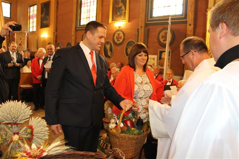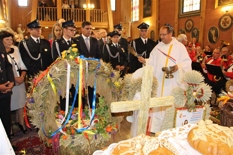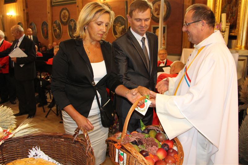 Tegoroczne dożynki powiatowe zawitały do gminy Nowa Sucha. Rozpoczęły się uroczystą Mszą św. w kościele p.w. Przemienienia Pańskiego w Kurdwanowie. Wierni, którzy po brzegi wypełnili zabytkowy kościół, dziękowali za zebrane plony i modlili się w intencji rolników. Nabożeństwu przewodniczył o. Samuel z Zakonu Bernardynów, który poświęcił przepiękne wieńce dożynkowe i przyniesiony tu chleb. Towarzyszył mu ks. Jacek Warzecha, proboszcz tutejszej parafii.
