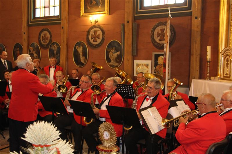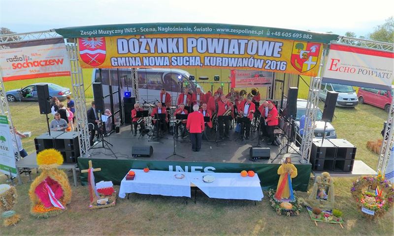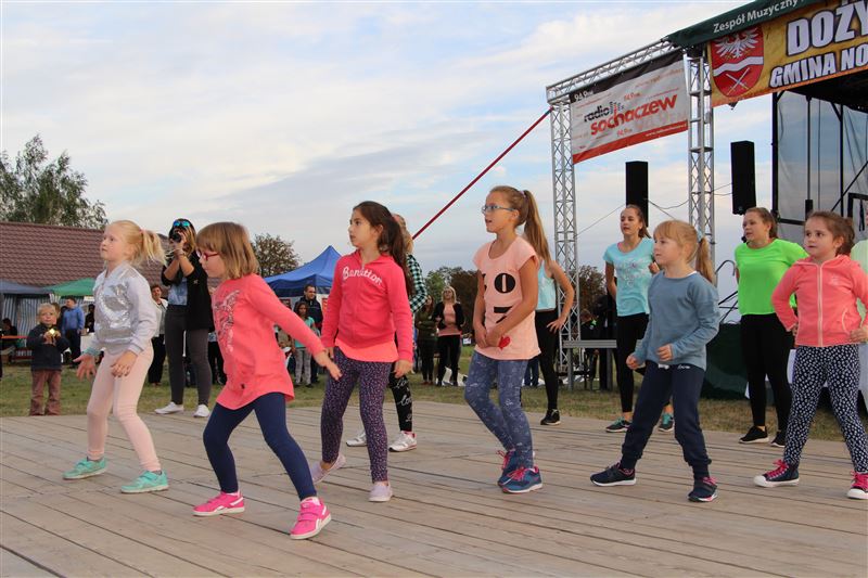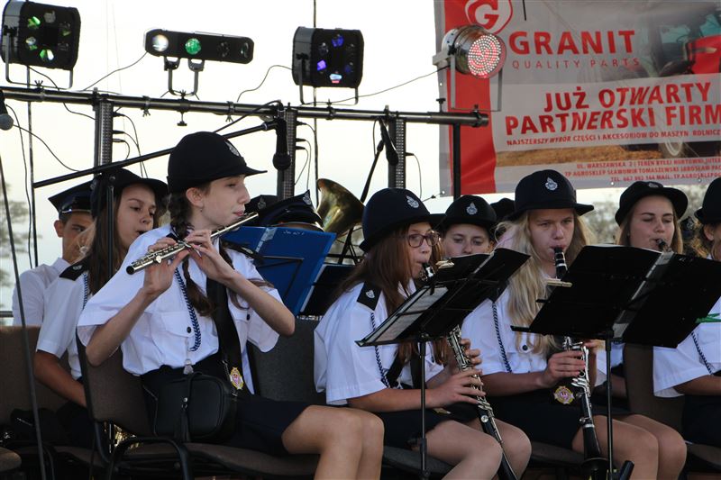Po oficjalnym ceremoniale dożynkowym na tłum gości czekało wiele atrakcji podczas części artystyczno – rozrywkowej. A tę otworzył występ Sochaczewskiej Orkiestry Dętej pod dyrekcją Krzysztofa Podczaskiego, której wcześniej mieliśmy okazję posłuchać podczas uroczystej Mszy św.