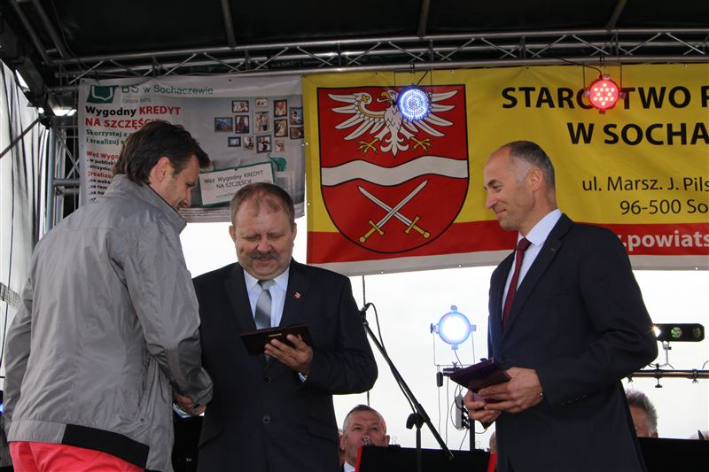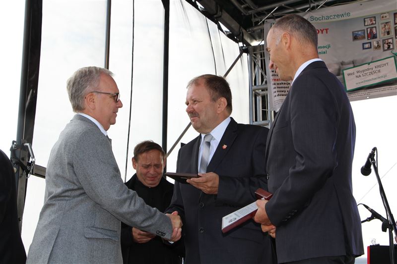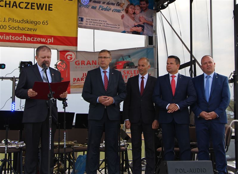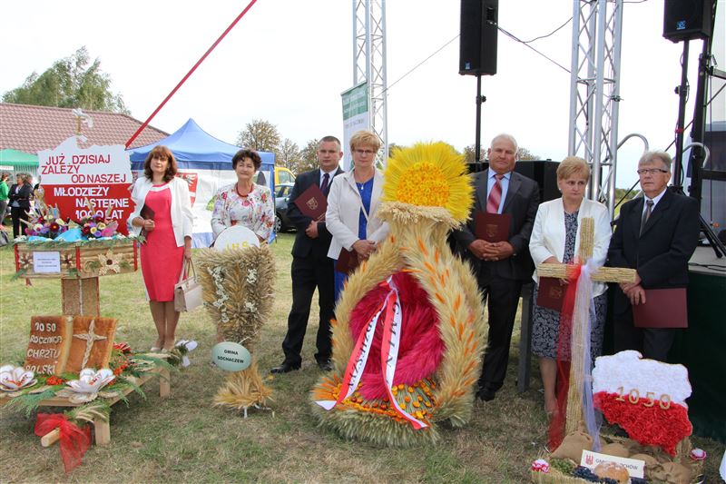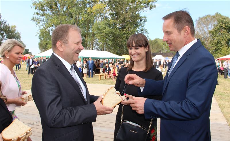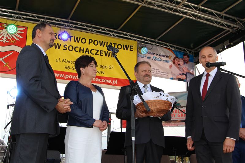 Oczywiście nie mogło zabraknąć obrzędu dzielenia chleba dożynkowego. Bochnami chleba częstowali wszystkich przedstawiciele władz państwowych, wojewódzkich, powiatowych, gminnych oraz sołtysi. Obecni byli wójtowie gmin powiatu sochaczewskiego oraz władze miejskie. Honory starostów dożynkowych w tym roku pełnili mieszkańcy gminy Nowa Sucha - Jadwiga Teresiak z Antoniewa i Ryszard Kuracki z miejscowości Okopy. Samorząd powiatowy, obok wicestarosty reprezentował Andrzej Kierzkowski, przewodniczący Rady Powiatu, a także Anna Ulicka, Andrzej Grabarek i Szymon Ziółkowski członkowie Zarządu Powiatu, jak również Wanda Dragan i Monika Wideńska jako wiceprzewodniczące Rady Powiatu. Zaś gminy Nowa Sucha wójt Maciej Mońka i przewodniczący Rady Gminy Mariusz Mikulski.