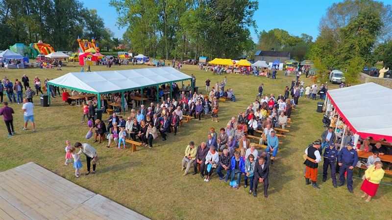 Tuż po Mszy św. barwny korowód dożynkowy przeszedł procesyjnie na plan tuż za kościołem, gdzie miały miejsce dalsze uroczystości związane z powiatowym świętem plonów.