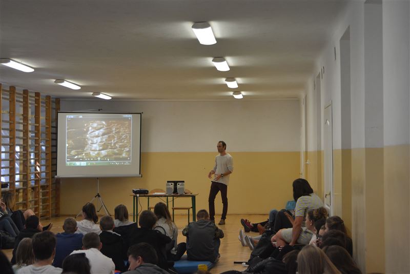 Nasz gość zachęcał do uczestnictwa w działaniach nowej pracowni w Sochaczewskim Centrum Kultury. Wszyscy, którzy interesują się malarstwem i próbują swych sił w tej dziedzinie sztuki, ale także miłośnicy fotografii, filmu, instalacji mogą realizować swoje pasje na zajęciach pracowni. Trwa nabór jej członków. Zapraszamy do SCK. Na spotkaniu z uczniami wiele miejsca Gamid poświęcił jednemu ze swoich projektów artystycznych zatytułowanemu „Biały szum” – bardzo oryginalna forma artystyczna. Jeśli macie w sobie ducha eksperymentatora zapraszamy do Sochaczewskiego Centrum Kultury.