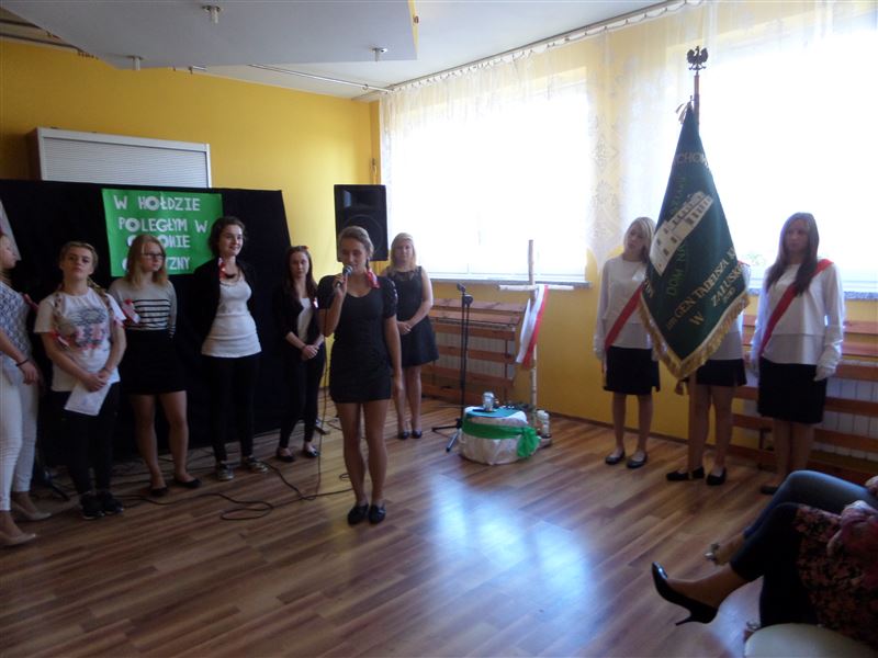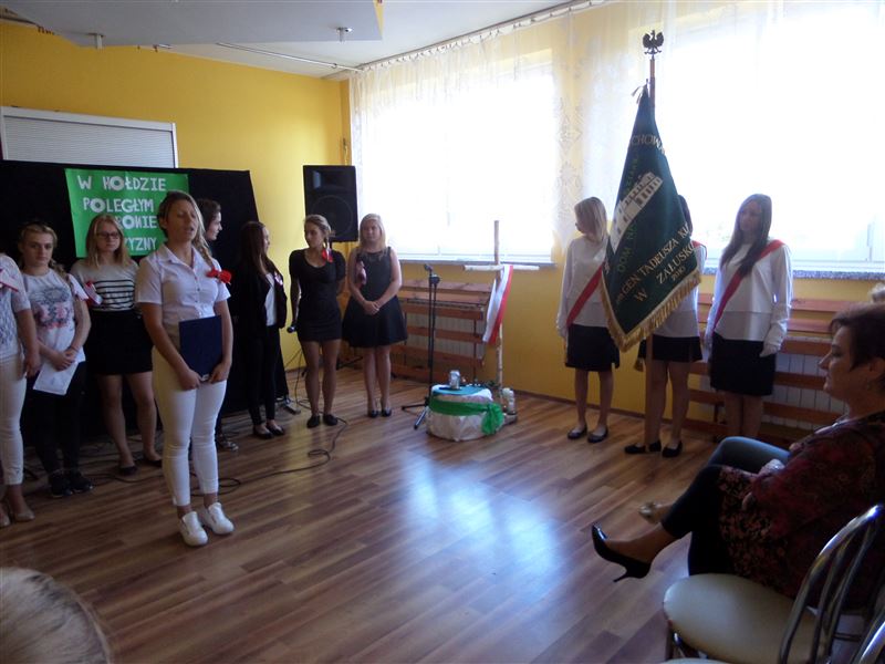 Widzowie mieli okazję przypomnieć sobie ważne momenty z historii naszej Ojczyzny oraz mogli posłuchać pieśni patriotycznych wykonanych przez nasze gimnazjalistki.