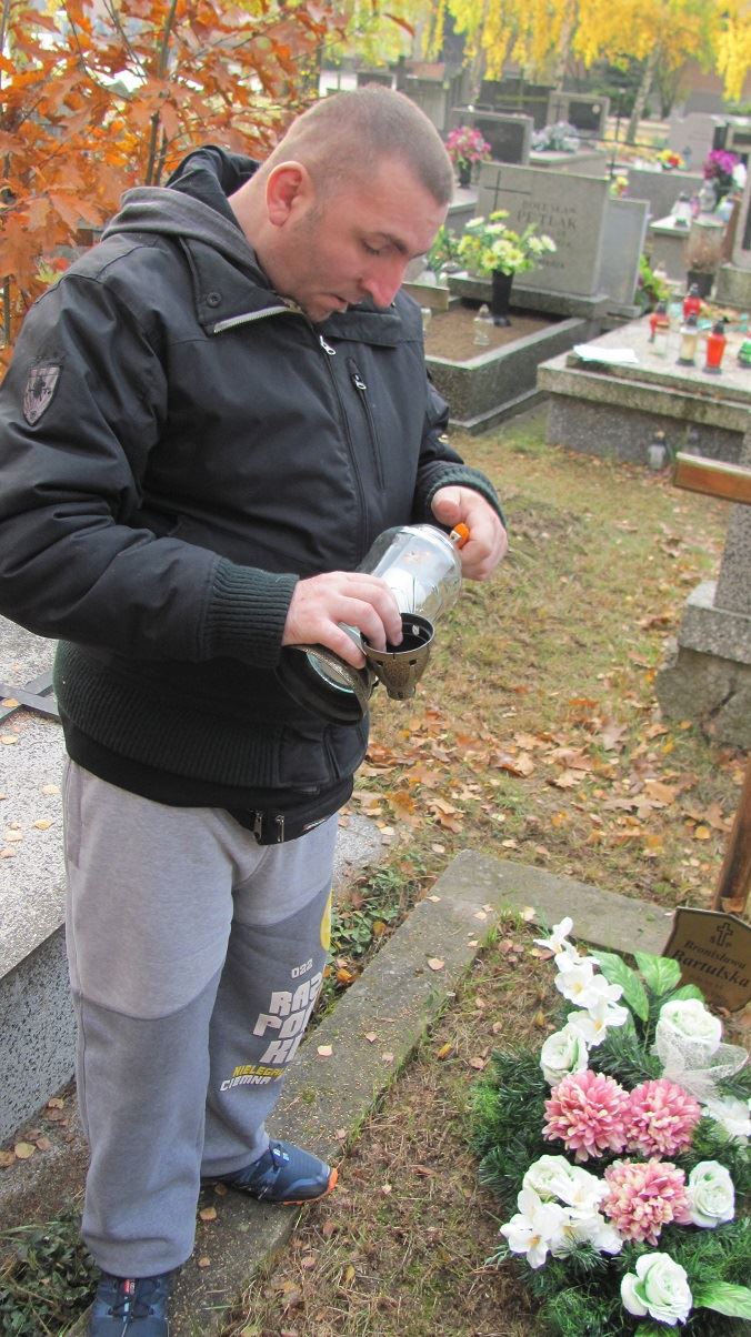 Szczególnymi dniami były czwartek i piątek (27 i 28.10), kiedy to na pięknie wysprzątane groby zawieźliśmy zrobione, w ramach terapii zajęciowej wiązanki oraz zapaliliśmy znicze, symbolizujące naszą modlitewną pamięć o zmarłych. Był to czas szczególnej zadumy, podczas której można było wspomnieć chwile spędzane z naszymi bliskimi, zastanowić się nad swoim życiem oraz pochylić się nad tajemnicą śmierci.