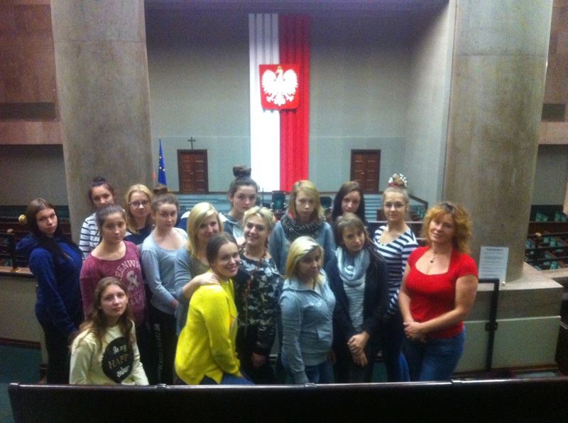 12 października 2016 r. odbyła się ciekawa lekcja dla dziewcząt z Młodzieżowego Ośrodka Wychowawczego w Załuskowie w salach sejmowych. W godzinach porannych pojechałyśmy dwoma busami. Z Załuskowa do Warszawy podróż szybko przebiegła i już o godzinie 10.00 rano stałyśmy przed gmachem Sejmu. Po dokonaniu niezbędnych formalności, dokładnym sprawdzeniu i otrzymaniu specjalnej przepustki, zostałyśmy wpuszczone na teren Sejmu Rzeczpospolitej Polskiej. Pani przewodnik zaprosiła nas do sali gdzie, dokonała prezentacji „Kraj nasz dawniej i dziś”. Omówiła również Konstytucję i początki rodzącej się demokracji w naszym państwie. Następnie przeszłyśmy do kolejnej sali, gdzie zaprezentowano nam makietę Sejmu, Parlamentu oraz poszczególnych pomieszczeń. Punktem kulminacyjnym było oczywiście zwiedzanie sali obrad. Pani przewodnik zadawała wiele pytań z dziedziny historii znajomości prawa oraz zasad głosowania w naszym kraju. Przedstawiła podział miejsc, poszczególnych partii politycznych, sposób głosowania przez posłów. Wskazała, które miejsca zajmują ważne osoby w państwie. Dziewczęta zainteresowała tablica pamiątkowa ofiar smoleńskich oraz godło naszego kraju, które ocalało z katastrofy samolotu i jest wyeksponowane za szybą. Na zakończenie zobaczyłyśmy kuluary sejmowe i otrzymałyśmy pomoce do zajęć lekcyjnych w postaci płyty „Sejm-tradycja i współczesność”, „Sejm ustawodawczy 1919-1922” oraz książkę „Dzieje Sejmu Polskiego”. Spotkanie w Sejmie było bardzo ciekawą lekcją historii i wiedzy o społeczeństwie.