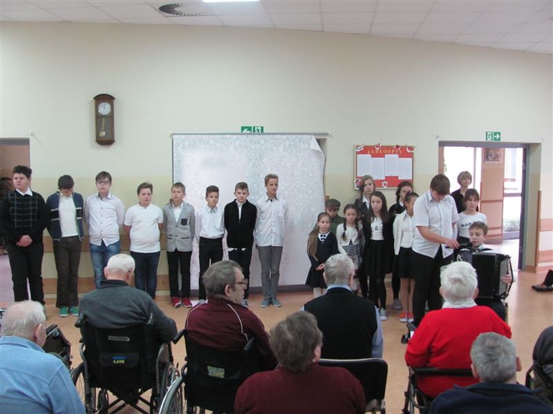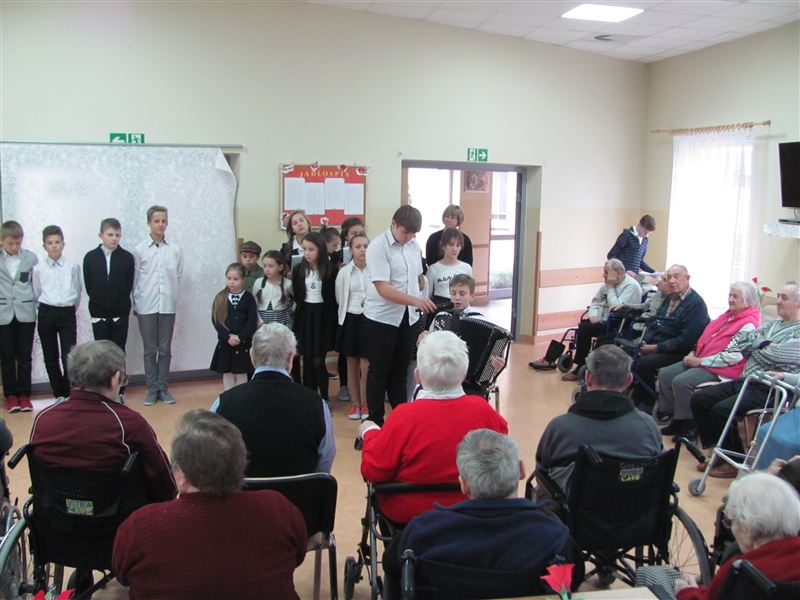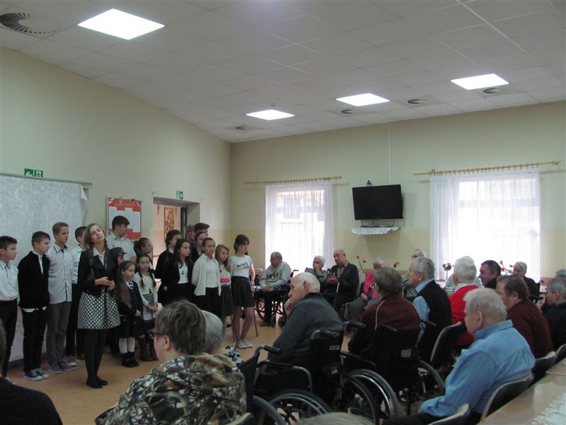 W dniu 24 listopada mieszkańców Domu Pomocy Społecznej w Młodzieszynie odwiedziły dzieci wraz z nauczycielami ze Szkoły Podstawowej w Brzozowie. Wizyta związana była z występem odnoszącym się do niedawnego Święta Niepodległości. Młodzi artyści zaśpiewali wiele patriotycznych pieśni ,które stanowią piękną lekcję polskiej historii.