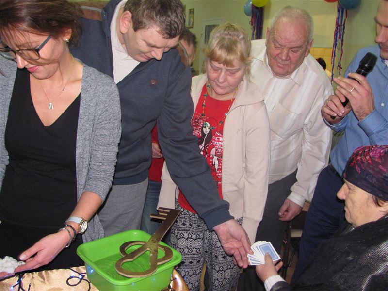 Podczas spotkania był czas nie tylko na świetną zabawę przy muzyce różnych artystów, zapewnioną przez naszego Instruktora ds. Kulturalno-Oświatowych- Dj Alberto, ale również na tradycyjne wróżby woskowe, wróżby z butami i losowanie wróżb ze szklanej kuli, którą pilnie strzegła obecna na balu wróżka, w której rolę wcieliła się jedna z Mieszkanek.