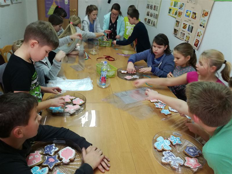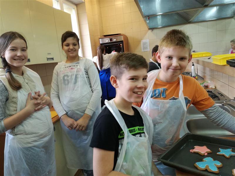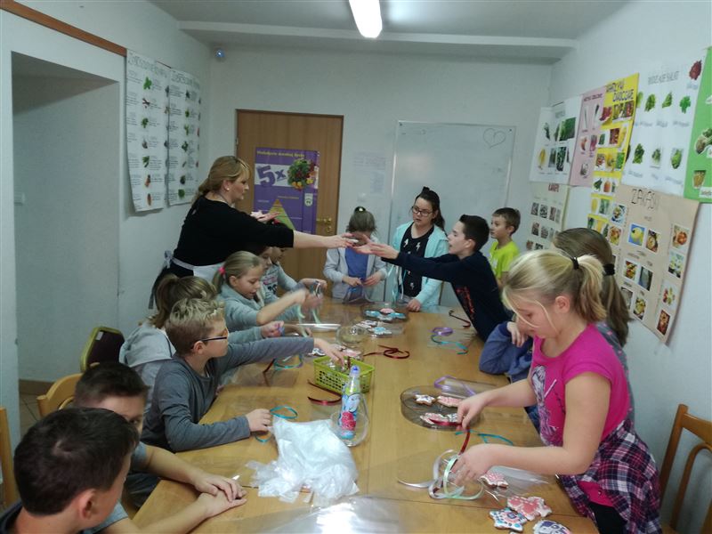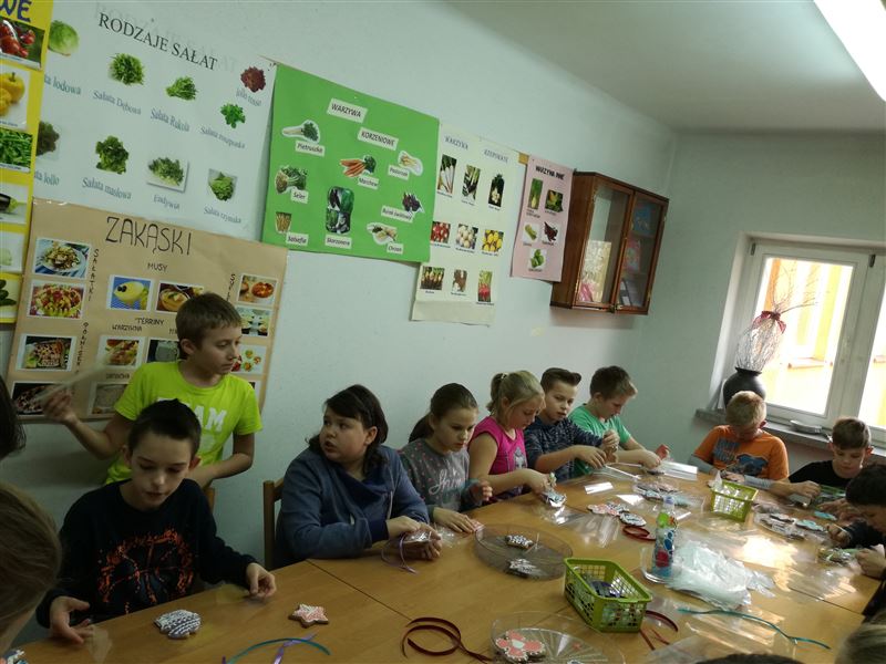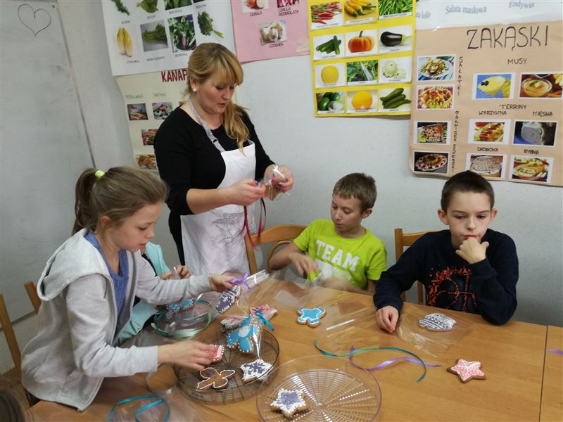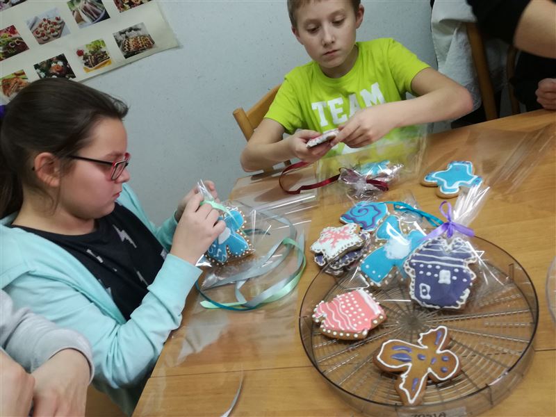 Na warsztatach młodzież poznała tradycję pieczenia pierników oraz sposoby dekoracji – ręcznego malowania gwiazdek, aniołków domków i serduszek oraz ich eleganckiego pakowania. Spotkanie przebiegło bardzo pracowicie i twórczo, młodzież była niezwykle zadowolona ze swoich prac.