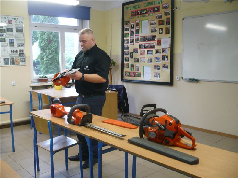 25 listopada w naszej szkole odbyło się spotkanie lokalnego przedstawiciela firmy Husqvarna - Pana Dobrzyńskiego z młodzieżą technikum ogrodniczego. Nasi uczniowie mieli okazję poznać najnowszą ofertę tej firmy dotyczącą pilarek spalinowych, elektrycznych oraz nożyc do cięcia żywopłotu.