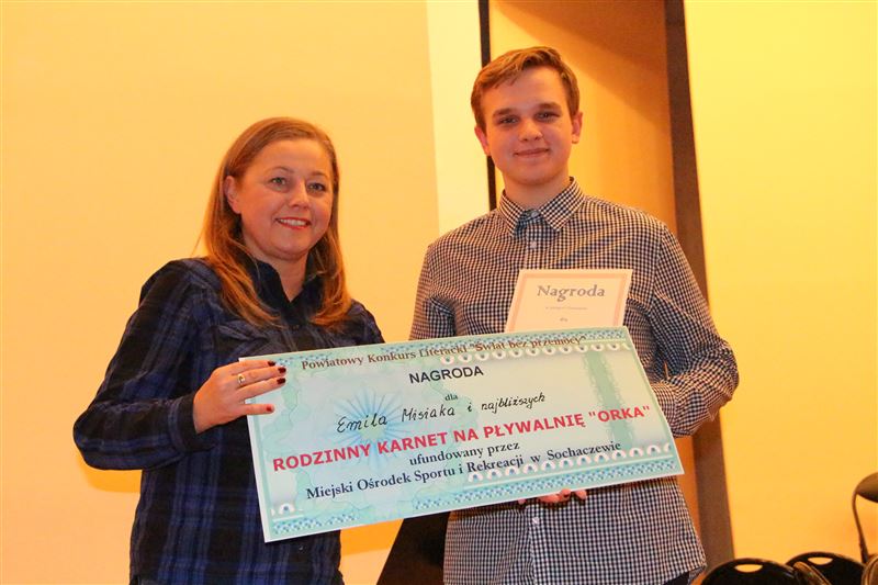 W poniedziałek, 5 grudnia 2016 r. w sali koncertowej Państwowej Szkoły Muzycznej I i II st. im. F. Chopina w Sochaczewie odbył się finał Powiatowego Konkursu Literackiego „Świat bez przemocy”. Konkurs, który organizowany był po raz pierwszy cieszył się dużym zainteresowanie, co mile zaskoczyło organizatorów – Powiatowe Centrum Pomocy Rodzinie.