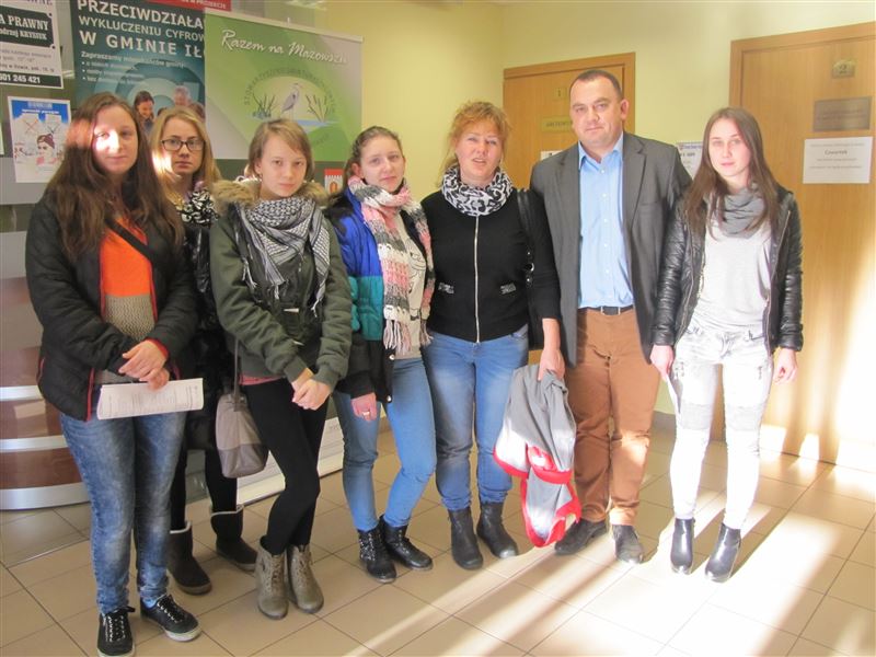 W ramach lekcji wiedzy o społeczeństwie, klasa trzecia udała się do Urzędu Gminy Iłów. Zastała zapoznana ze strukturą i działalnością urzędu, z zadaniami funkcjonowania gminy oraz pracą poszczególnych wydziałów. Zapoznano nas z zadaniami Rady Gminy, kto wchodzi w jej skład i ilu liczy członków. Następnie ważnym punktem, który nas zainteresował był wydział meldunkowy. Pracownik tego wydziału zapoznał nas z dokumentacją, jaką należy złożyć przy składaniu wniosku na dowód osobisty. Pytań było sporo, zważywszy na fakt, iż uczennice trzecich klas będą niedługo dokonywały tej czynności. Dziewczynki otrzymały informację, iż wniosek na dowód osobisty mogą składać w Iłowie, tu również mogą go odebrać. Pod koniec lekcji pokazano wychowankom, gdzie pracuje i jakie pełni zadania Wójt Gminy. Natomiast sekretarz gminy - Przemysław Nowacki oprowadził nas po urzędzie, opowiedział krótką historię Iłowa oraz wręczył na zakończenie spotkania każdej uczennicy pamiątkową torebkę z informatorami i płytą o ciekawych miejscach w naszej gminie. Uczennice były zadowolone z przeprowadzonej lekcji w takiej formie.