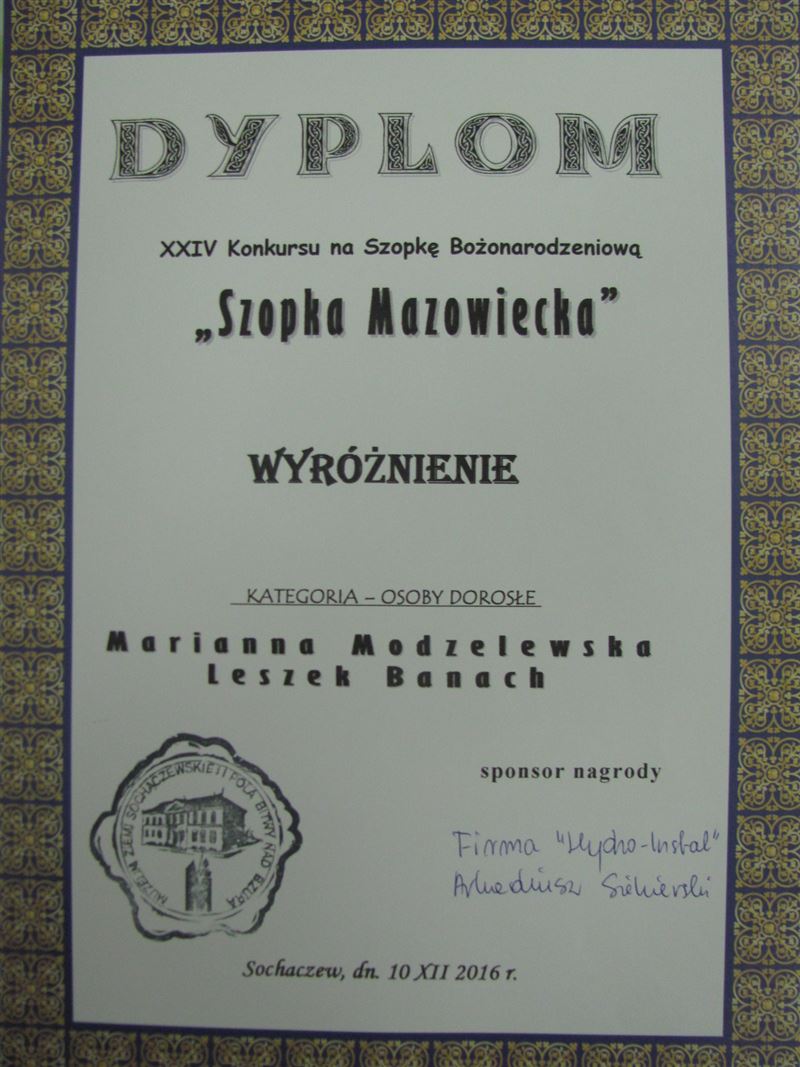 Nagrodę otrzymali - Marianna Modzelewska i Leszek Banach. Uroczystość wręczenia nagród odbyła się 10 Grudnia 2016 roku, w bardzo sympatycznej i gwarnej atmosferze. Gratulujemy organizatorom i do zobaczenia za rok. Wesołych Świąt!