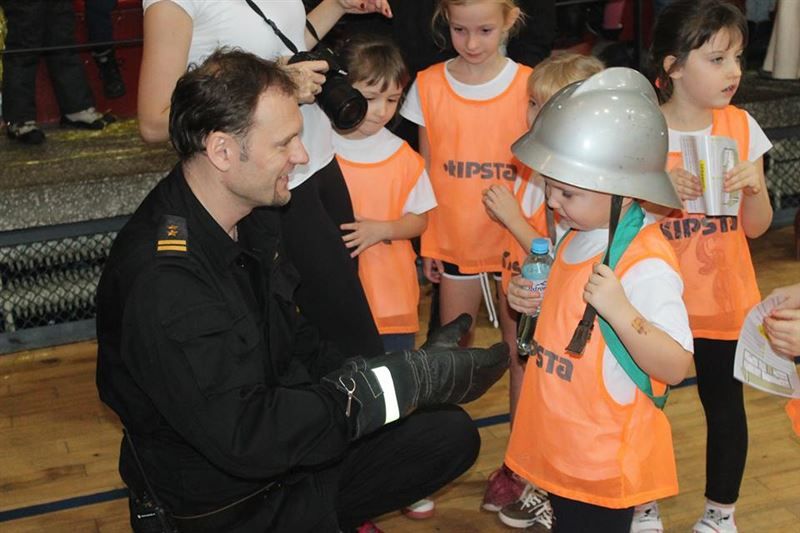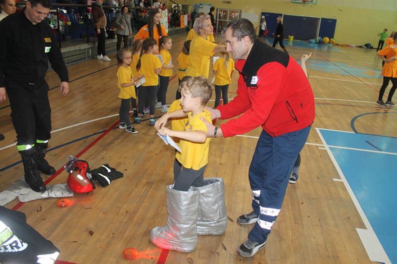 Fantastyczne niespodzianki dla maluchów przygotowała Komenda Powiatowa Państwowej Straży Pożarnej, Komenda Powiatowa Policji i Szpital Powiatowy w Sochaczewie. Przez całą olimpiadę maluchy mogły oglądać wyposażenie strażackie, policyjne, przymierzyć hełmy czy mundury. Ratownik medyczny ze szpitala na fantomie pokazywał jak udzielać pierwszej pomocy. Obecność naszych służb przydała nam się bardzo, bo nawet musieliśmy przeprowadzić jedną akcję ratunkową, która na szczęście obyła się bez uszczerbku na zdrowiu zawodnika, a jedynie na jego zadowoleniu, że tylu strażaków mu pomagało.