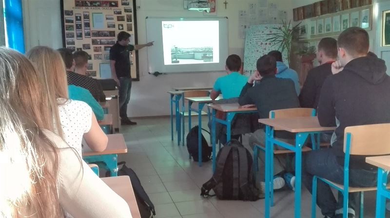 W minionym miesiącu uczniowie klas Technikum Geodezyjnego w sochaczewskim ZSR CKU uczestniczyli w spotkaniach z przedstawicielem firmy Topcon - Jerzym Pacześniakiem, który zaprezentował sprzęt geodezyjny oraz najnowsze technologie pomiarowe. Były to między innymi systemy GNSS, tachimetry hybrydowe, czy skanery laserowe. Uczniowie mieli również możliwość wykonania samodzielnych pomiarów przedstawianym sprzętem. Wszyscy byli pod dużym wrażeniem zaprezentowanych instrumentów, jak i ich szerokiego wykorzystania.