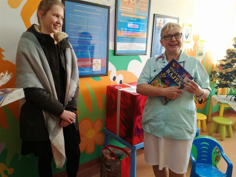 Finał miały również przedsięwzięcia, których inicjatorami byli uczniowie i nauczyciele naszej szkoły. Takim działaniem była akcja „Uszyj pluszaka dla dzieciaka”. To projekt naszego wolontariatu, a jej pomysłodawczyniami były uczennice klasy 3B gimnazjum. Dzięki zaangażowaniu uczniów gimnazjum i liceum, którzy uszyli zabawki według własnego projektu udało się przygotować wspaniałą paczkę dla dzieci z Oddziału Pediatrycznego Szpitala Powiatowego w Sochaczewie. Z życzeniami szybkiego powrotu do zdrowia dla dzieci przebywających na Oddziale, delegacja ze szkoły przekazała w piątek pluszaczki pani ordynator Elżbiecie Matuszewskiej-Woźnicy. Na oddział trafiły również książeczki, klocki i zabawki, które Samorząd Uczniowski zakupił ze świątecznego kiermaszu słodkości. Mamy nadzieję, że dzieci które w okresie świątecznym przebywały w szpitalu choć na chwilkę zapomniały o swoich smutkach.