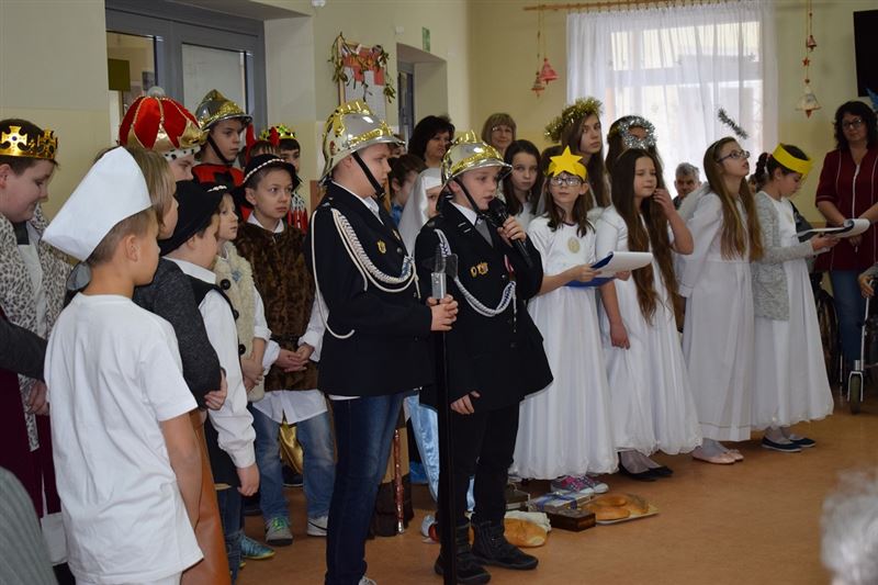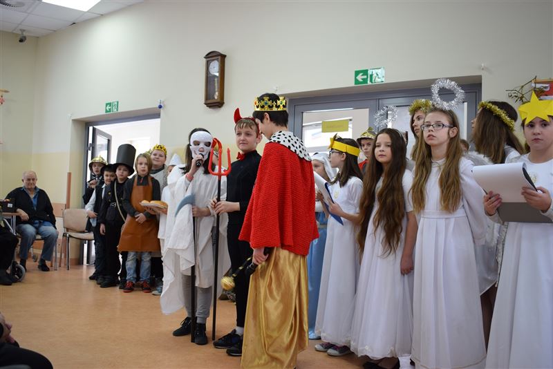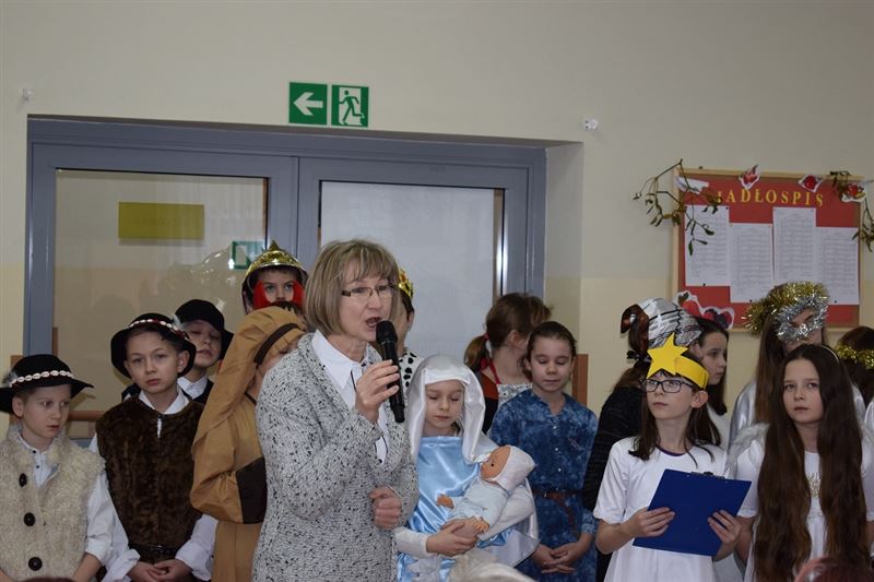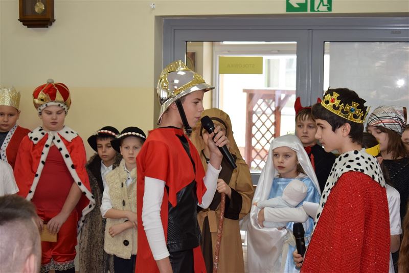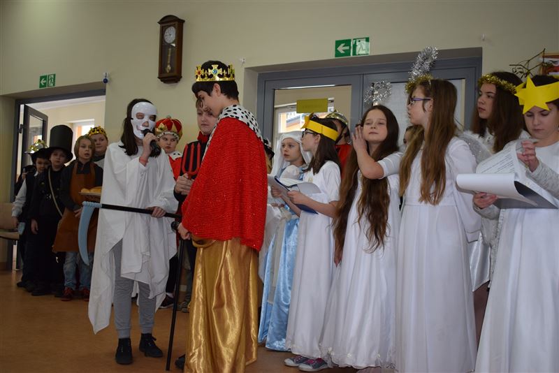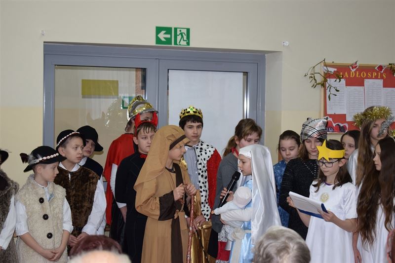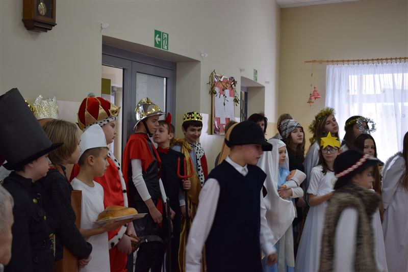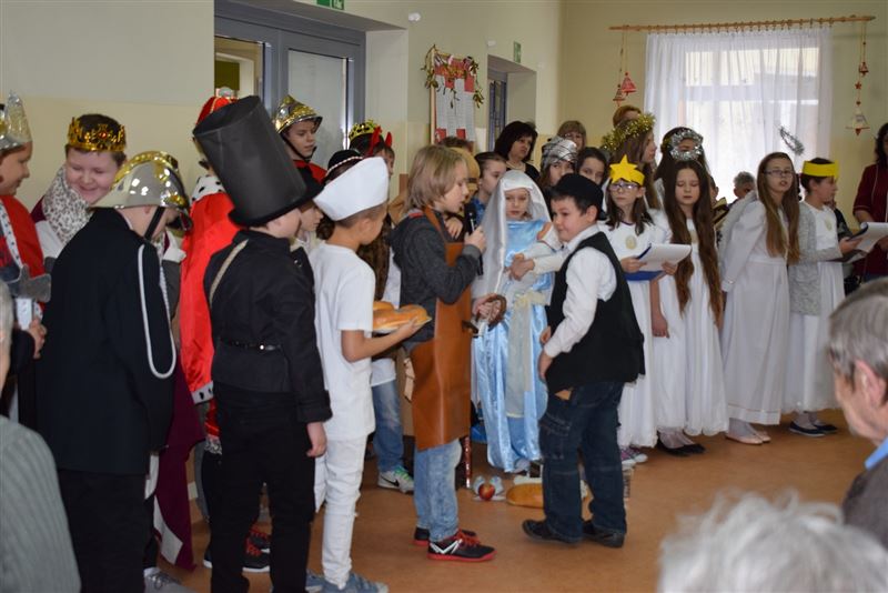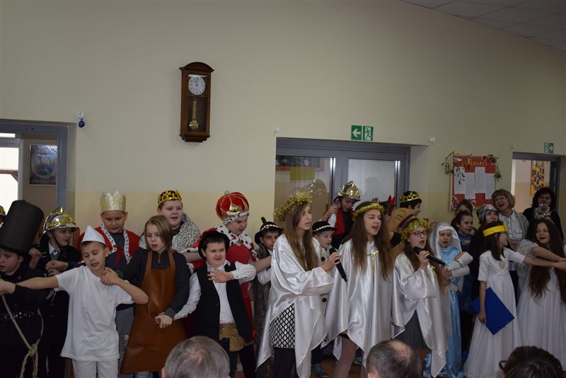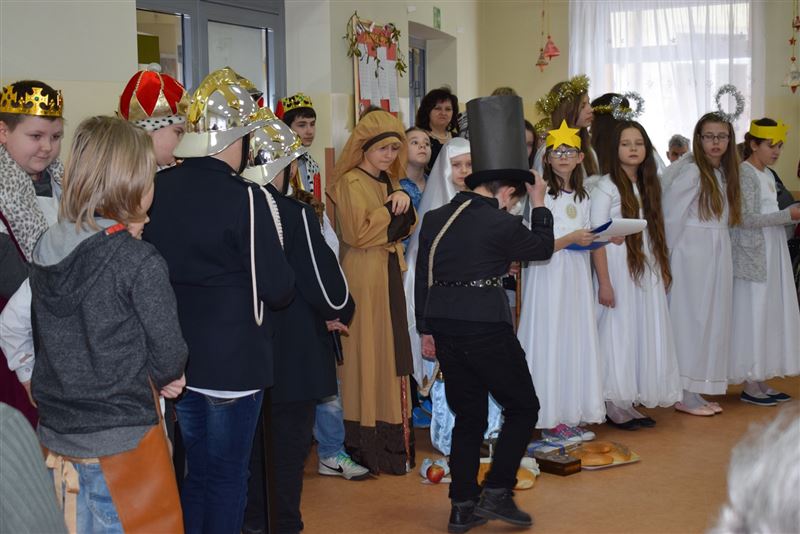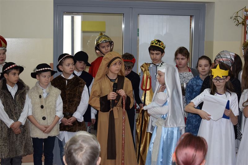 Dzieci pod kierunkiem nauczycieli przygotowały i zaprezentowały tradycyjne Jasełka Bożonarodzeniowe pt. "Leć kolędo w świat" bogate w treści religijne i piękne polskie kolędy. Przedstawienie wzbogaciły piękne stroje, Trzej Królowie przybyli z darami, ale i pastuszkowie, kolędnicy, herodzi, czy też kowal, piekarz, szewczyk posiadali stosowne do swoich ról eksponaty. Sami artyści przybyli również w roli kolędników z darami polskiej ziemi, tutejszego regionu – zdrowymi przepysznymi jabłkami.