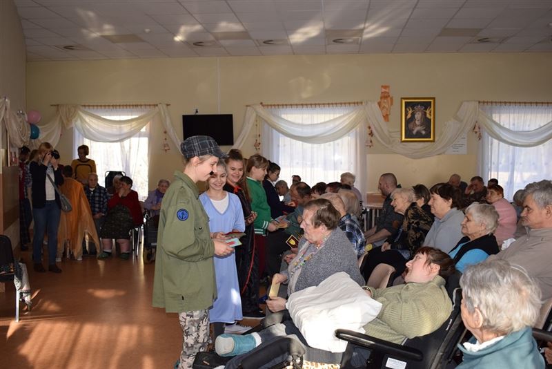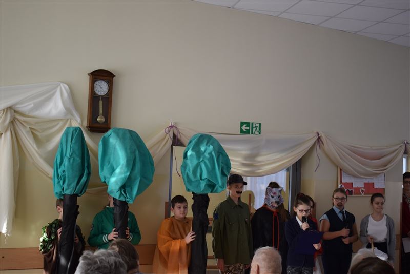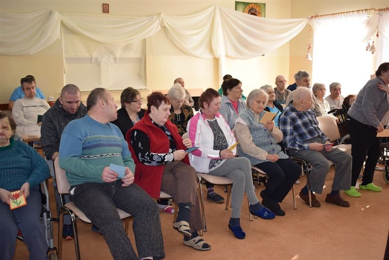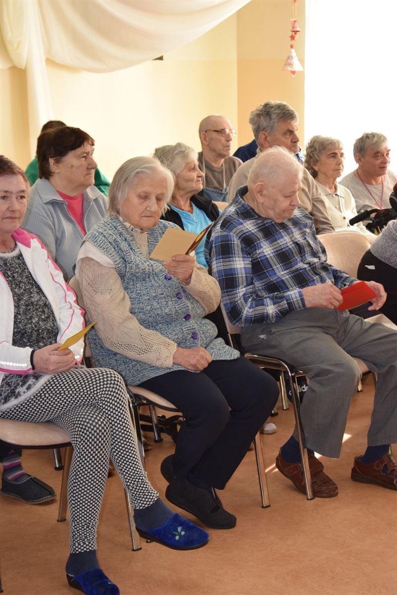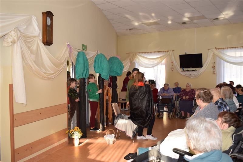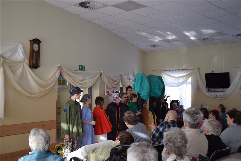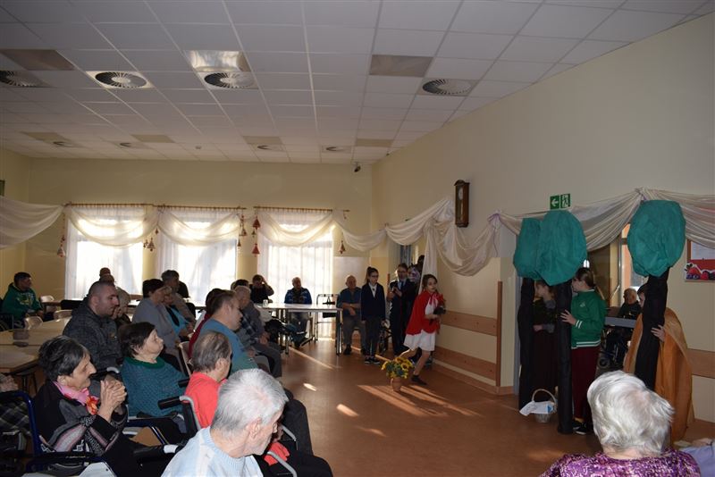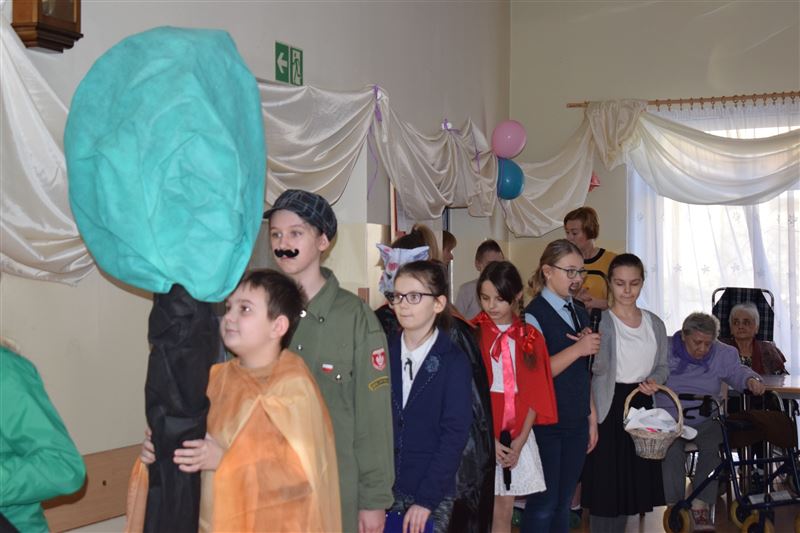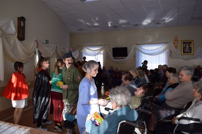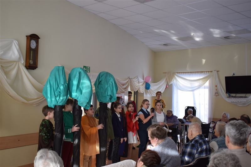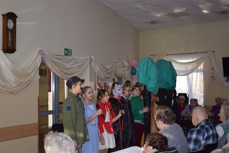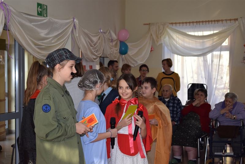 Mieszkańcy Domu Pomocy Społecznej w Młodzieszynie ponownie przeżywali piękne i radosne chwile, tym razem za sprawą dzieci ze Szkoły Podstawowej im. św. Maksymiliana Kolbego w Teresinie. Uczniowie tej szkoły, pod kierunkiem nauczycieli przygotowali program słowno – muzyczny, w którym opowiadali jak wielkie znaczenie mają dla nich babcie i dziadkowie.