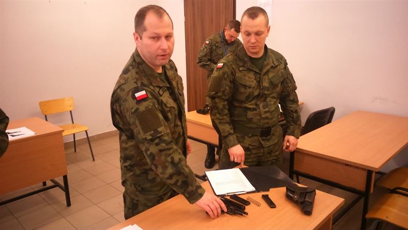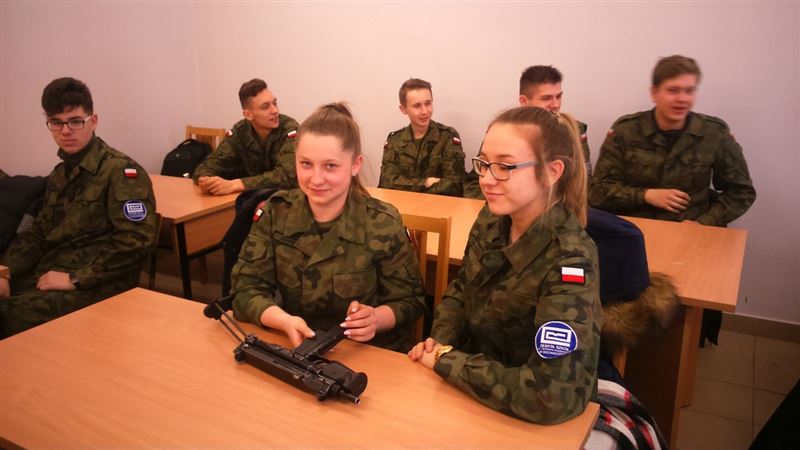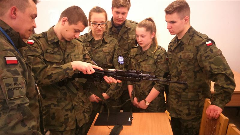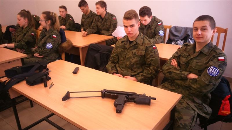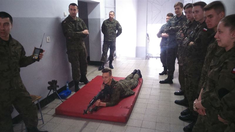 Na początku udaliśmy się do sali, gdzie usłyszeliśmy wykład na temat budowy, przeznaczenia i właściwości bojowej broni strzeleckiej używanej w jednostce. Po tym wykładzie przeszliśmy do zajęć praktycznych, które polegały na rozkładaniu na części takiej broni jak pistolet P-83, pistolet maszynowy PM84p oraz karabin szturmowy. Następnie czyściliśmy przydzielona nam broń, smarowaliśmy , a na koniec składaliśmy, robiąc to pod czujnym okiem doświadczonych żołnierzy. Kolejne zajęcia ,jakie odbyliśmy w jednostce to strzelanie z broni treningowej AK-47 do tarczy sportowej. Zajęcia były bardzo interesujące i z niecierpliwością czekamy na kolejne, które planujemy odbyć już za miesiąc.
