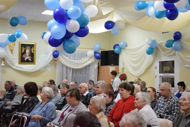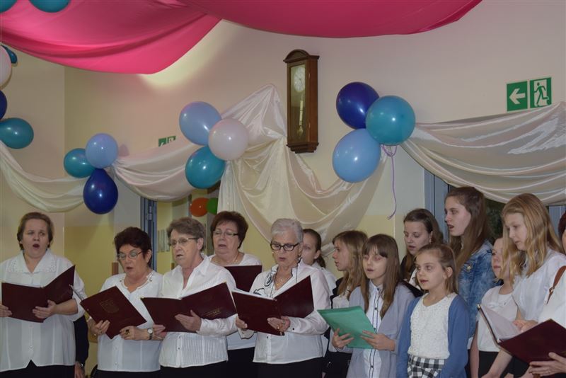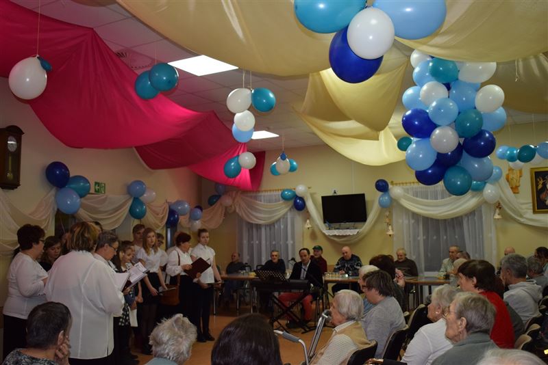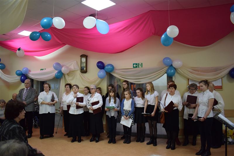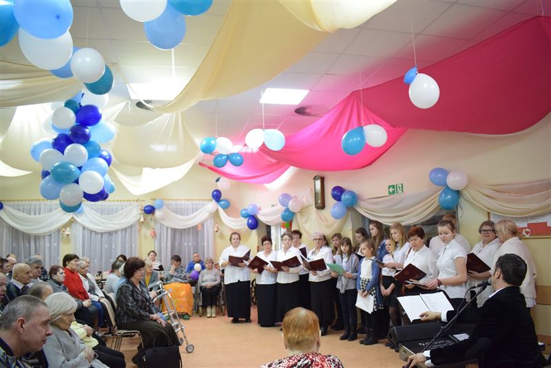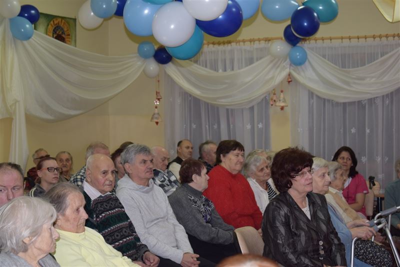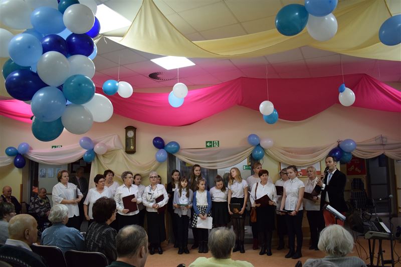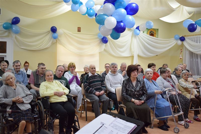 Chór dostarczył pięknych przeżyć Mieszkańcom Domu Pomocy Społecznej w Młodzieszynie. Całe pomieszczenie, w którym odbywał się koncert wypełnione było po brzegi radosnymi twarzami naszych podopiecznych, a z publiczności gdzieniegdzie dobiegał głos wtórujących chórowi słuchaczy.