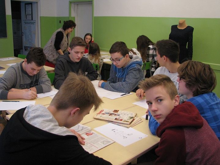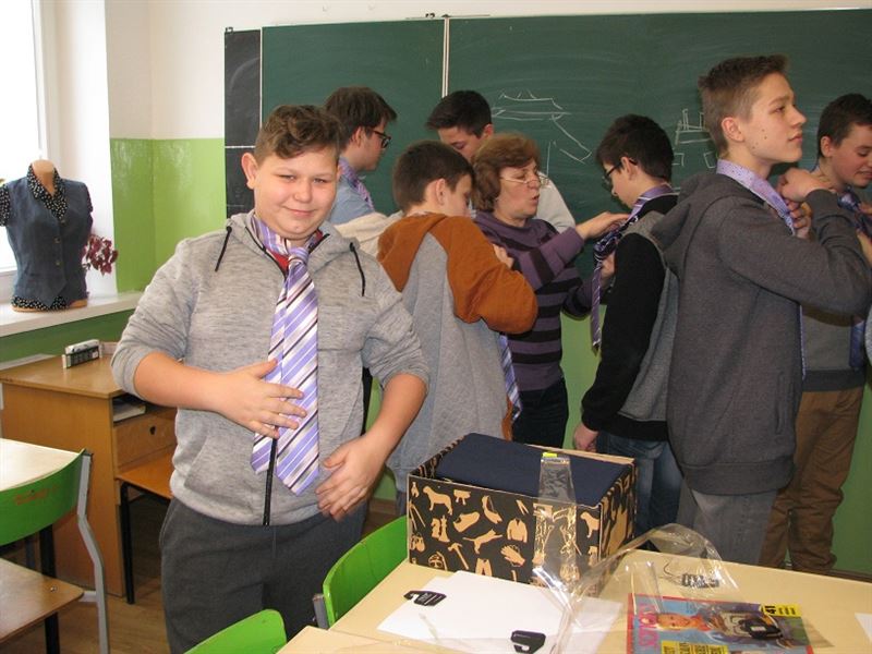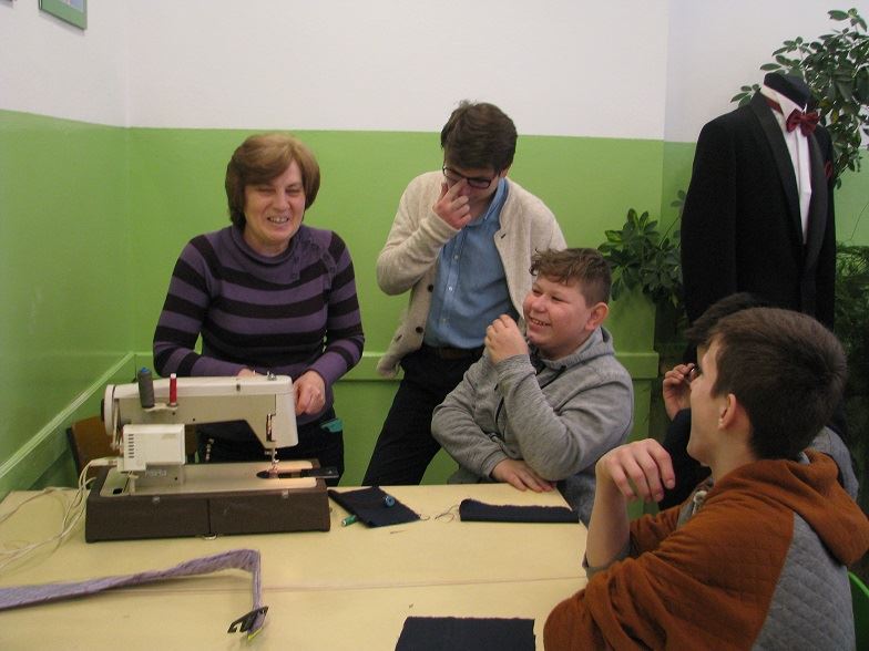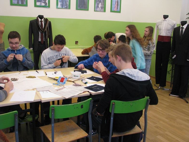 Niecodzienne warsztaty krawieckie pod hasłem „Tańcowała igła (mechaniczna) z nitką” nawiązywały do nowego kierunku kształcenia, który swoją działalność rozpocznie tu od września tego roku. Mowa o technikum odzieżowym. Uczniowie poznali budowę, działanie, sposoby konserwacji maszyny do szycia oraz podstawowe ściegi maszynowe. Uczestnicząc w projekcie „Tak cię piszą, jak cię widzą„ grupa przybyłych uczniów uczyła się zasad projektowania odzieży, sposobów zdejmowania miary, podstawowych ściegów ręcznych i maszynowych czy czytania wykrojów krawieckich. Co ciekawe, na każdych zajęciach była możliwość podjęcia próby szycia na maszynie. Czyli teorię można od razu było sprawdzić w praktyce. Niektórzy przyznali, że to ich pierwsze w życiu „zderzenie” ze sztuką szycia. Śmiechu zatem było co niemiara.