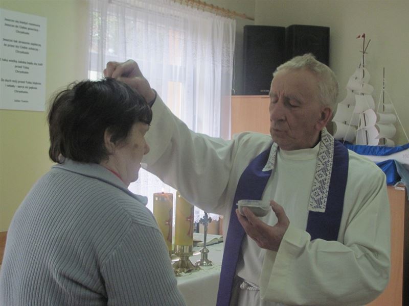 W środę 1 marca br., tak jak w całej Polsce obchodziliśmy Środę Popielcową. Mieszkańcy Domu Pomocy Społecznej w Młodzieszynie uczestniczyli w liturgii pokutnej, która rozpoczęła się w godzinie miłosierdzia o 15.00. Zebrani mogli wsłuchać się w słowa skierowane do nich przez kapłana, przypominające o wadze okresu Wielkiego Postu. Ten dzień rozpoczyna bowiem 40-dniowy czas, podczas którego podejmujemy pracę nad swoją duchowością. Posypaniu głów popiołem towarzyszyły słowa: „Pamiętaj, że z prochu powstałeś i w proch się obrócisz” oraz „Nawracajcie się i wierzcie w Ewangelię”. Słowa te przypominają o kresie naszej ziemskiej pielgrzymki, dając szczególną możliwość do ukształtowania w sobie postawy postu, modlitwy i jałmużny – trzech najważniejszych zadań okresu Wielkiego Postu dla każdego chrześcijanina.