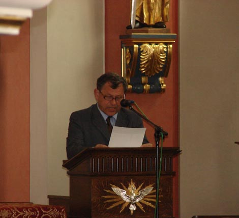 Podczas koncertu T. Chudecki przytoczył fragment powieści „Fryderyk” autorstwa Tadeusza Łopalewskiego, który pisał: „W zimnej zakrystii trzeba było wyłuskać na chwilę z powijaków malutkiego Fryderyka Franciszka. Nosek mu poczerwieniał, a w oczach zaświeciły krople łez. I podczas kiedy Grębecki wyrzekał się w jego imieniu złego ducha i wszelkich spraw tegoż, zziębnięty Chopinek płakał coraz głośniej, nie zwracając uwagi na uspokajające znaki rodzica. Nagle, spoza ściany z głębi kościoła dobiegały przygłuszone dźwięki organów. Zaczynały się nieszpory i organista intonował jakąś pobożną pieśń. Zanoszące się od płaczu dziecko umilkło raptem i wytrzeszczyło zdumione oczki. Ani chłodne palce księdza, namaszczającego mu odkrytą pierś i plecki, ani gorycz soli wciśniętej w usta - nic nie mogło wyrwać go z zasłuchania w muzykę, w brzmienie dziwnych, nieznanych głosów.
