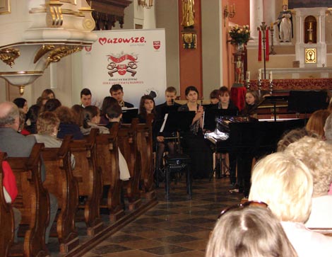 Wśród wykonawców mogliśmy wysłuchać uczniów solistów PSM: Elizę Marusiak, Małgorzatę Zaczkowską, Michała Muchę, Aleksandra Krawczyka, Konrada Krawczyka, Nikołaja Kucharskiego, Klaudię Sawicką i Zbigniewa Nasarzewskiego oraz Orkiestrę Kameralną Państwowej Szkoły Muzycznej II st. im. Fr. Chopina w Sochaczewie pod dyrekcją Daniela Zielińskiego. Były polonezy, mazurki i etiudy. Koncert poprowadził aktor Tadeusz Chudecki.