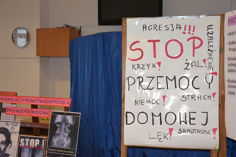 Na potrzeby akcji przygotowano wystawę - Stop przemocy w rodzinie! Plakaty profilaktyczne o powyższej tematyce wykonali uczniowie klasy I tkml (Andzelika Leszczyńska, Patrycja Olczak, Agata Milewska, Hubert Cieślak, Patryk Langa, Martyna Nowak).