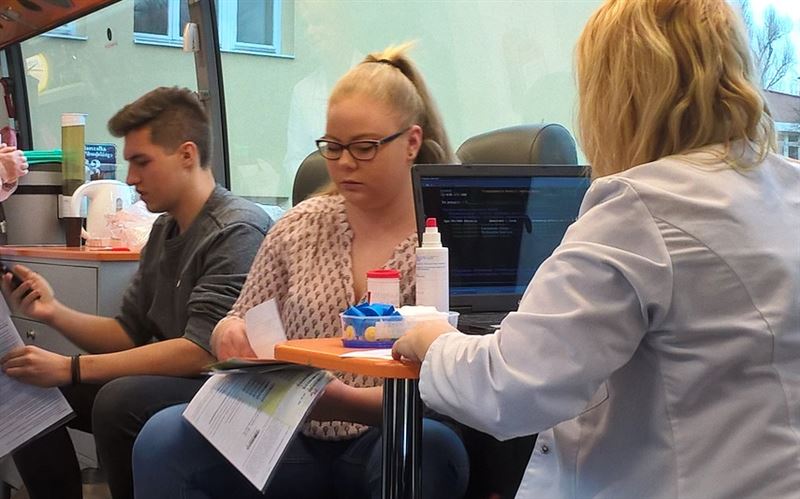 W dniu Święta Kobiet przed Zespołem Szkół RCKU w Sochaczewie można było oddać krew. Spośród 35 zarejestrowanych, krew oddało 20 osób - 18 uczniów i 2 nauczycieli.