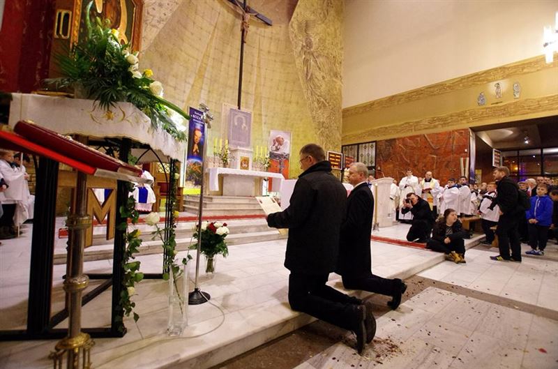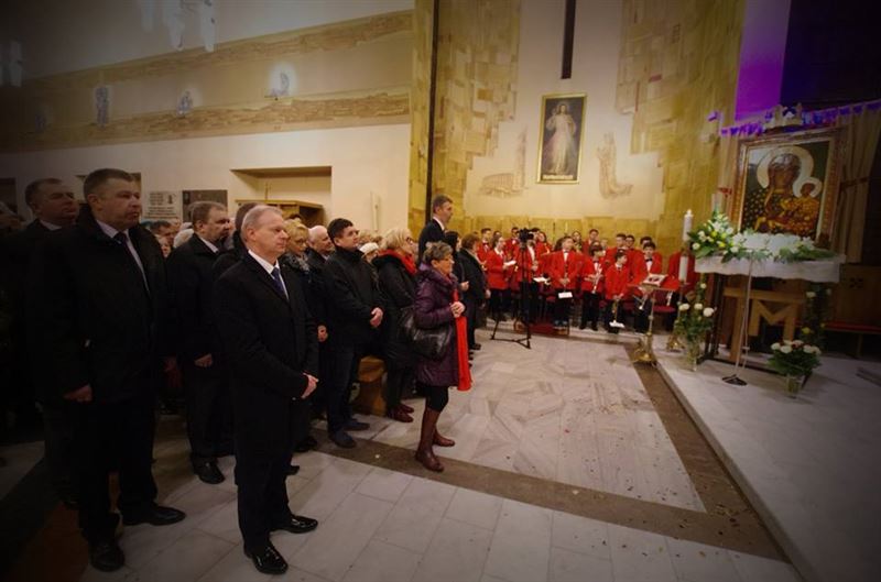 W uroczystościach powitalnych udział wzięły tłumy wiernych, wśród których byli też m.in. reprezentanci samorządu powiatowego na czele ze starostą Jolantą Gonta, przewodniczącym Rady Powiatu Andrzejem Kierzkowskim i wicestarostą Tadeuszem Głuchowskim. Obecny był Maciej Małecki, poseł, minister stanu w kancelarii Rady Ministrów, a także przedstawiciele władz miasta m.in. wiceburmistrzowie Marek Fergiński i Dariusz Dobrowolski. Nabożeństwu przewodniczył bp Wojciech Osial.