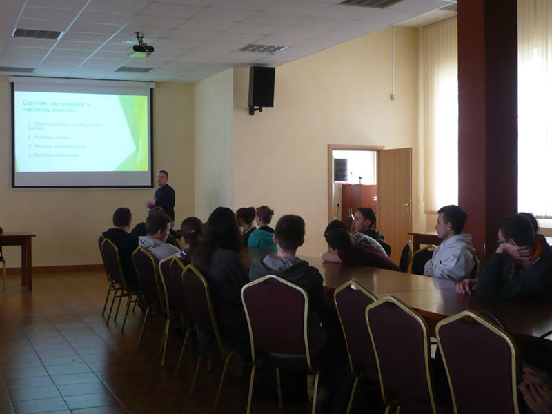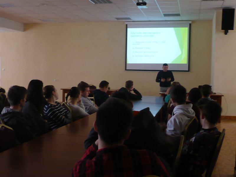 Tematem wykładu była ochrona sadu jabłoniowego przed chorobami pochodzenia grzybowego. Uczniowie wysłuchali prelekcji, a zdobyte praktyczne informacje będą mogli z pewnością wykorzystać.
