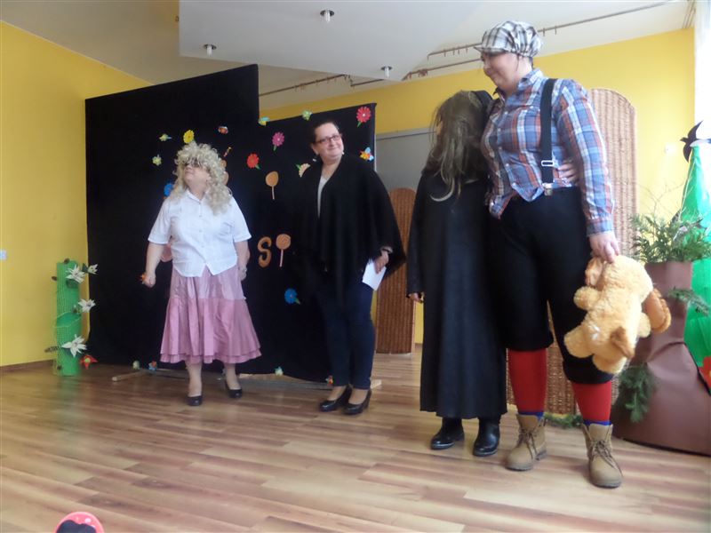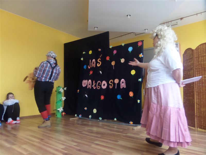 Punkt kulminacyjny tego dnia nastąpił po drugim śniadaniu. Na dziewczęta czekała niespodzianka. Nauczyciele, w tajemnicy przed nimi, przygotowali po raz kolejny przedstawienie. W tym roku postawiono na „Jasia i Małgosię - na wesoło”. Wychowanki były bardzo zaskoczone, że i tym razem nie one, ale ich opiekunowie znaleźli się na scenie. Dziewczęta bardzo żywiołowo reagowały na wyjścia poszczególnych postaci z bajki. Bawiła ich zarówno gra jak i kostiumy aktorów. Było dużo pozytywnych emocji i śmiechu, a na koniec nauczyciele zostali za swoje starania nagrodzeni gromkimi brawami.