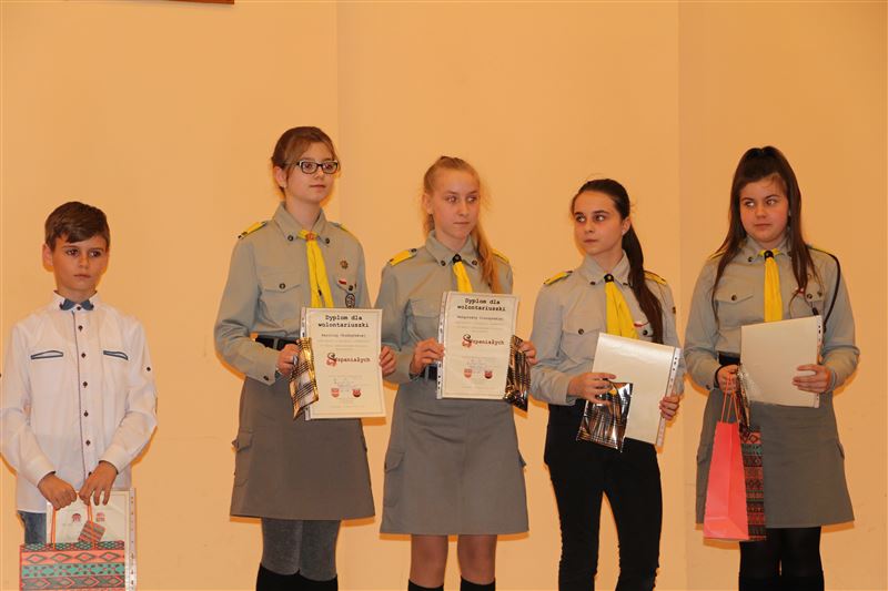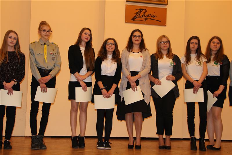 Jak podkreślał przewodniczący komisji konkursowej Albert Szułczyński, wybór najlepszych z najlepszych nie był łatwy, bo każdy z uczestników zaprezentował się bardzo dobrze, przedstawiając swoją działalność charytatywną. Zgłoszeni do konkursu wolontariusze zarówno indywidualnie, jak i w grupach aktywnie uczestniczą w życiu swojej klasy i szkoły, lokalnej społeczności, organizują i przeprowadzają różne akcje i zbiórki np. pieniędzy na rzecz chorych czy nakrętek, pomagają młodszym i słabszym w odrabianiu lekcji, działają w klubach wolontariackich, wspierają WOŚP czy Szlachetną Paczkę, odwiedzają osoby starsze, w tym pensjonariuszy Domu Pomocy Społecznej w Młodzieszynie, wspierają schroniska dla zwierząt, są harcerzami. - Ci młodzi ludzie, którzy wzięli udział w tegorocznej edycji powiatowego konkursu potrafią nie koncentrować się na sobie i na swoich sprawach, ale dostrzegać obok siebie człowieka potrzebującego. Jesteście wspaniali, udowodniliście to swoimi działaniami i życzę Wam, by ta postawa stała się Waszą życiową postawą. Bo według mnie wolontariat to wasz prywatny czas, który poświęcacie innym. Tu jest nie tylko 8 Wspaniałych – to Wy wszyscy jesteście tymi Wspaniałymi – mówiła m.in. Jolanta Gonta, starosta.