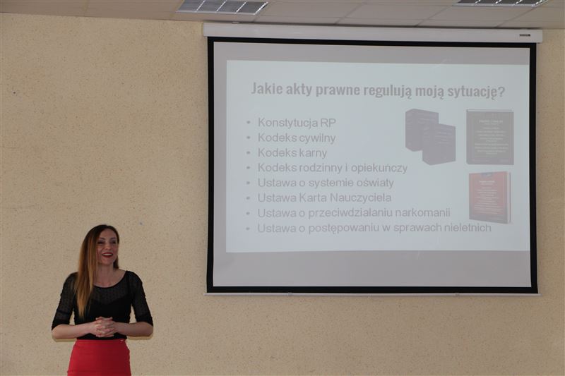Młodzież z ZS RCKU, ZS CKP, ZSO i ZS im. J. Iwaszkiewicza wzięła udział w szkoleniu, które odbyło się w Starostwie Powiatowym 3 kwietnia. Podczas kilkugodzinnego spotkania pani adwokat przekazała podstawą wiedzę uczniom dotyczącą wykorzystania prawa w codziennym życiu. Mówiła m.in. o tym, gdzie szukać informacji na temat prawa, gdzie zwrócić się po pomoc, do jakich instytucji. Przedstawiła też istniejące zawody prawnicze, opowiadając o każdym szczegółowo. Szkolenie zostało podzielone na pięć tematów: wstęp do prawa; prawo w rodzinie; prawo w szkole; prawo na co dzień; prawo w działaniu.