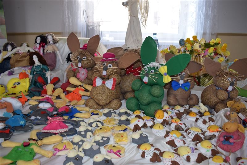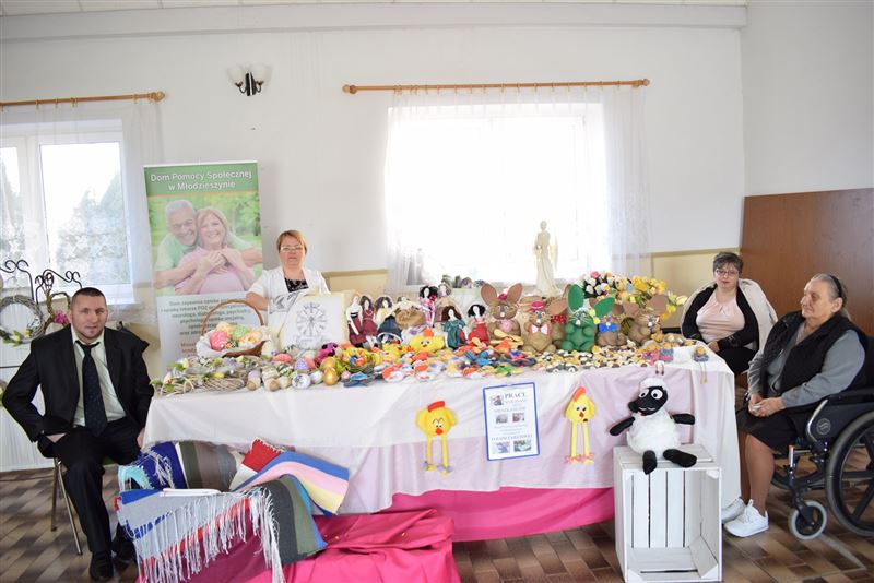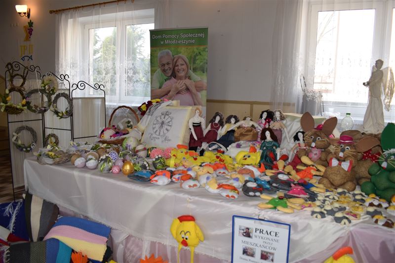 Pełni zapału, zaangażowania i chęci zaprezentowania swoich prac, mieszkańcy od świtu do wieczora podczas zajęć terapeutycznych z przyjemnością wykonywali wszelkie gadżety o tematyce wielkanocnej, w tym: zające, baranki, owieczki, koguciki, kurczaczki, serwety, pisanki, stroiki, lalki, dywany, a także kwiaty.