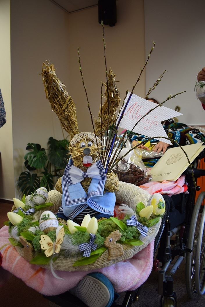 Dom Pomocy Społecznej w Młodzieszynie reprezentowali – Krystyna Kołota i Lechosław Banach. Za wykonanie prac tj., ozdoba wielkanocna i stroik wielkanocny, mieszkańcy otrzymali nagrody w kategorii osoby dorosłe. Wręczone zostały dyplomy i nagrody osobiście na ręce naszych artystów. Dziękujemy za możliwość udziału jak i uradowanie serc naszych mieszkańców.