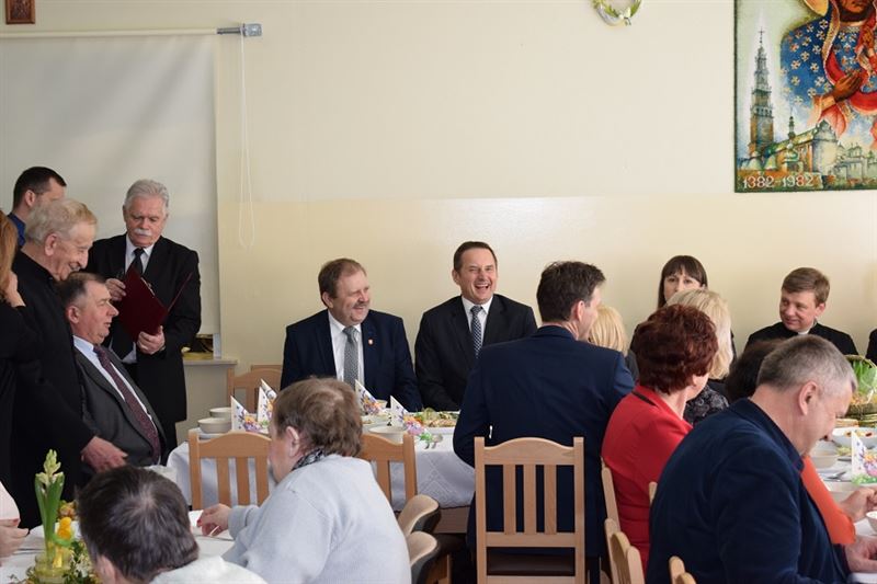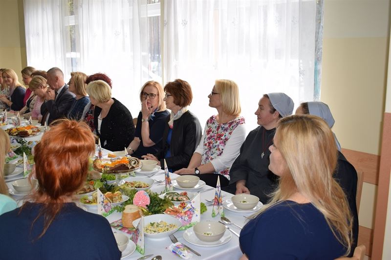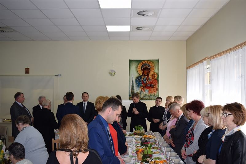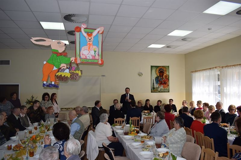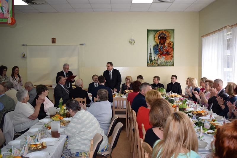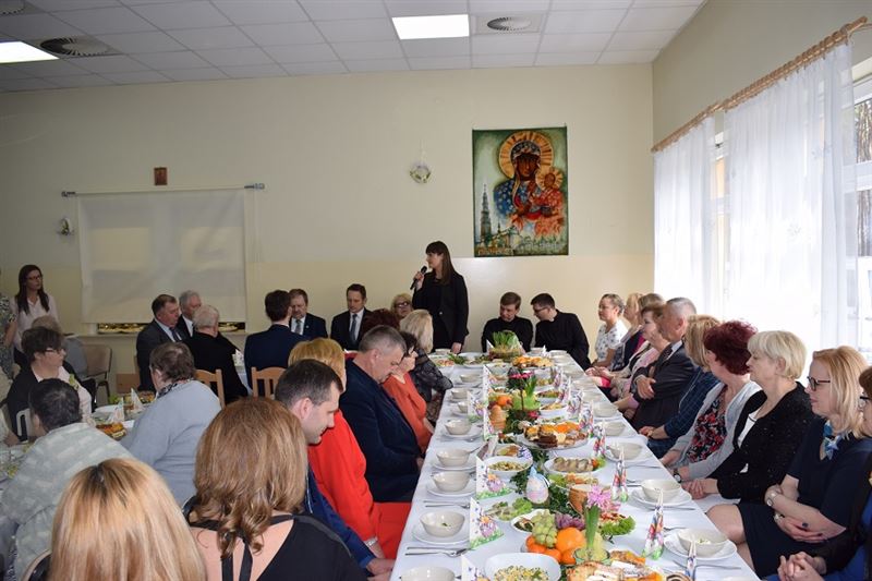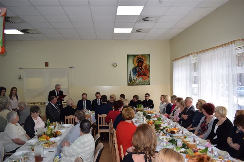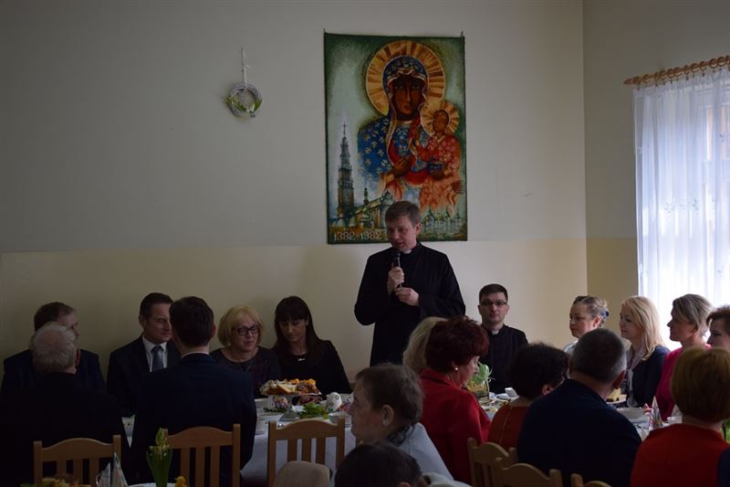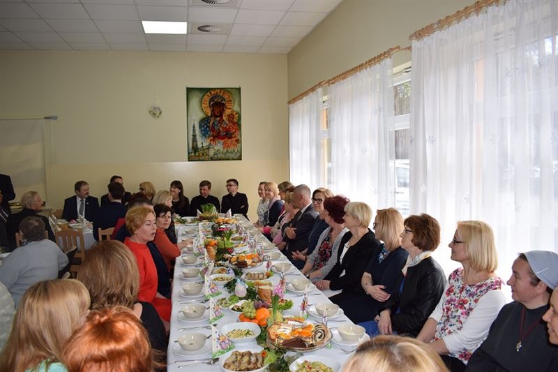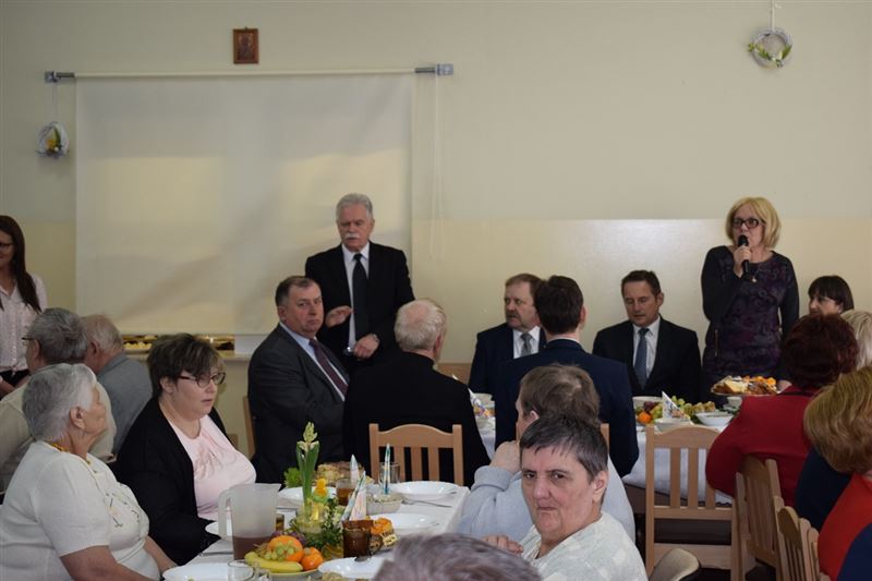 Wielkanoc jest najważniejszym świętem chrześcijańskim, które upamiętnia męczeńską śmierć i zmartwychwstanie Jezusa Chrystusa. Życzenia Świąteczne w imieniu wszystkich zebranych złożył Dyrektor Domu- Pan Konrad Jakubowski, Starostwa Sochaczewski – Pani Jolanta Gonta, Burmistrz Miasta Sochaczew - Pan Piotr Osiecki oraz Wójt Gminy Młodzieszyn – Pani Monika Pietrzyk. Po złożeniu życzeń świątecznych Ks. Dariusz Kuźmiński wspólnie z wszystkimi odmówił modlitwę. Następnie zgodnie z obowiązującą tradycją wszyscy podzieliliśmy się jajeczkiem.