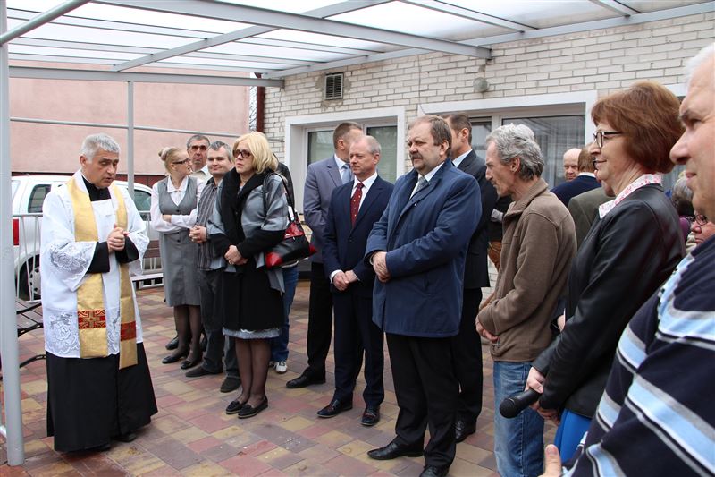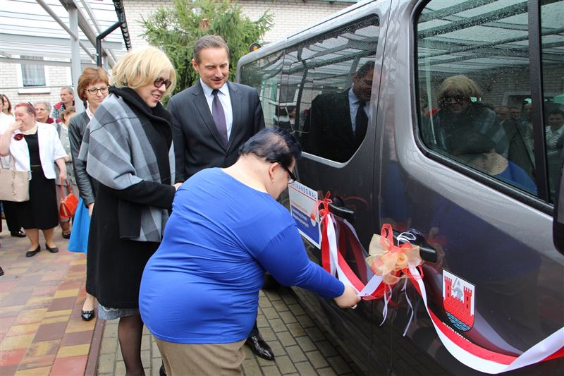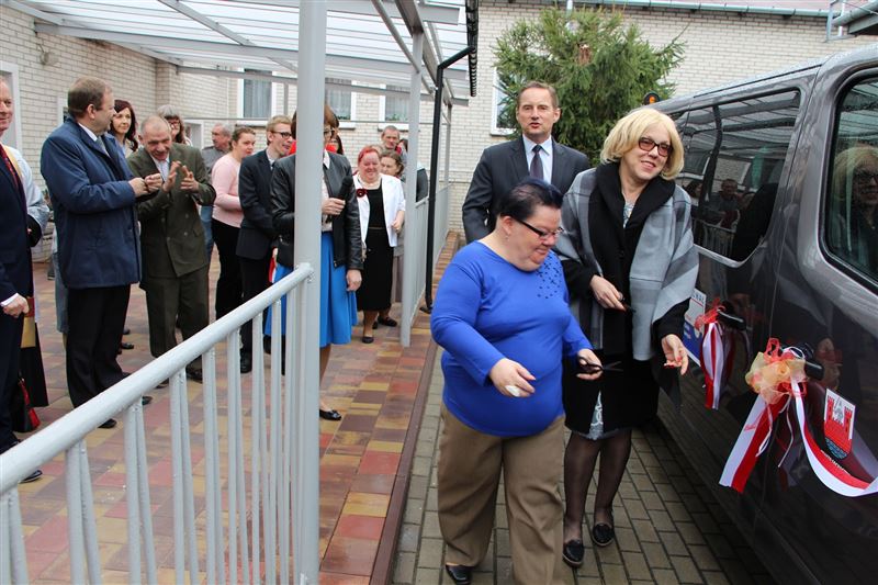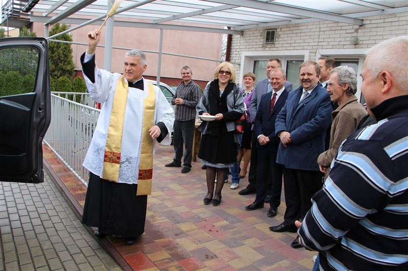 Nowe auto poświęcił ks. Andrzej Kita, który o bezpieczeństwo pasażerów modlił się z obecnymi podczas przekazania pojazdu - starostą, burmistrzem, a także wicestarostą Tadeuszem Głuchowskim, wiceburmistrzami Markiem Fergińskim i Dariuszem Dobrowolskim, pracownikami Starostwa Powiatowego i Urzędu Miasta oraz mieszkańcami i pracownikami Środowiskowego Domu Samopomocy.