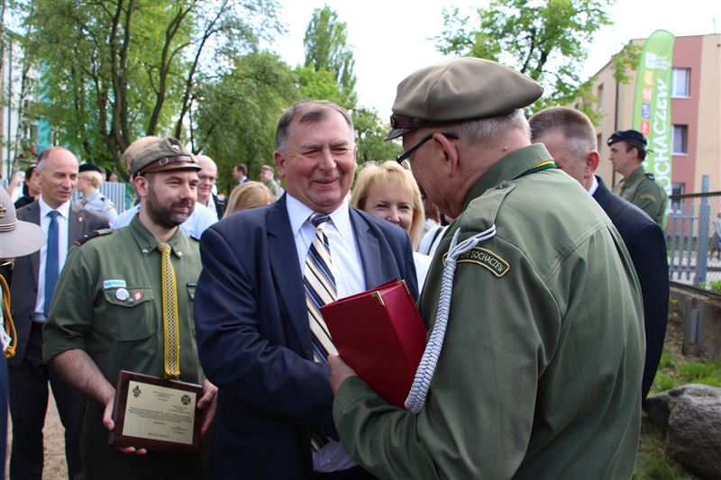 - Pragniemy złożyć kręgom instruktorskim, harcerkom, harcerzom i zuchom życzenia wszelkiej pomyślności, owocnej działalności, która przyczynia się do spełniania harcerskich zasad wychowawczych: służby, samodoskonalenia i braterstwa. Jesteśmy pełni wiary, że harcerska idea przez kolejne lata będzie w tak pięknym stopniu pielęgnowana i zakorzeniana w sercach i umysłach młodych ludzi, druhów ziemi sochaczewskiej. – mówiła starosta Jolanta Gonta gratulując i dziękując komendantowi hm. Krzysztofowi Wasilewskiemu podczas obchodów jubileuszu 80-lecia Hufca ZHP Sochaczew. Staroście w uroczystościach towarzyszył Andrzej Kierzkowski, przewodniczący Rady Powiatu oraz wicestarosta Tadeusz Głuchowski i Agata Kalińska, przewodnicząca Komisji Oświaty i Wychowania, Kultury, Sportu i Turystyki w Radzie Powiatu.