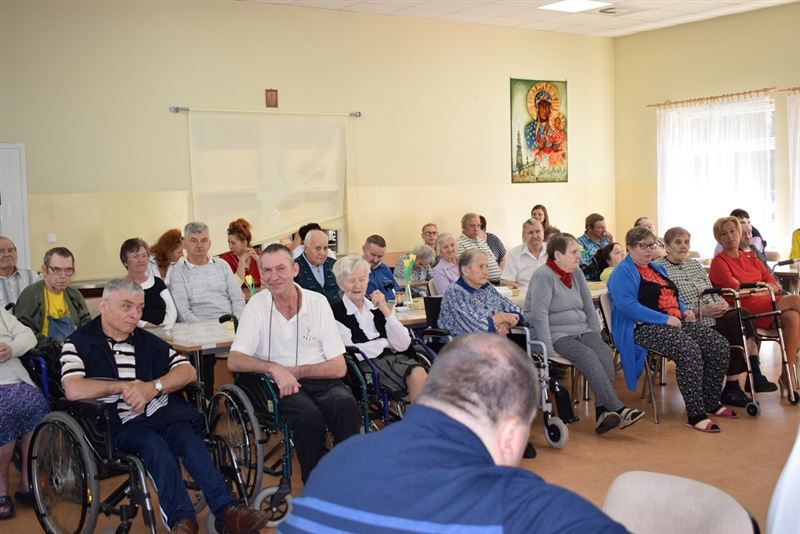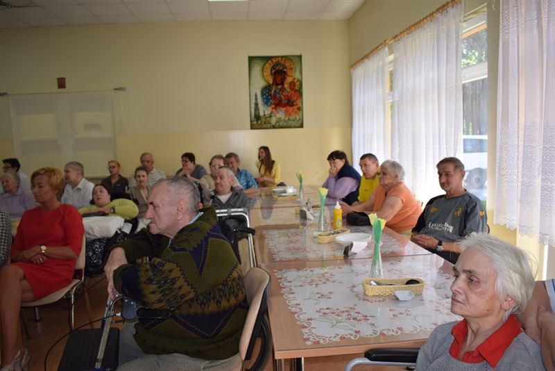 Podczas występów mieszkańcy DPS podziwiali piękny śpiew i tańce przybyłych gości.