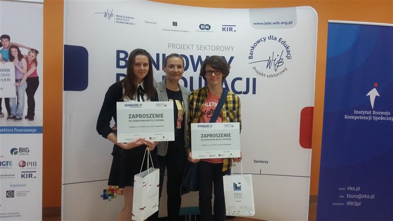 IV edycja konkursu realizowana była w ramach projektu sektorowego Bankowcy dla Edukacji. Organizatorami byli m.in. Instytut Rozwoju Kompetencji Społecznych i Warszawski Instytut Bankowości. Finaliści oprócz wykazania się szeroko zakrojoną wiedzą informatyczną (od programowania po cyberbezpieczeństwo), mieli możliwość nawiązania kontaktów ze starszymi kolegami odbywającymi praktyki i staż w najważniejszych instytucjach i firmach związanych z nowoczesnymi technologiami oraz partnerami konkursu tj.: Microsoft, IBM, BZ WBK. Dodajmy, że Adam zajął 6 miejsce i był jedynym uczniem gimnazjum wśród finalistów, a Ola zdobyła nagrodę specjalną.