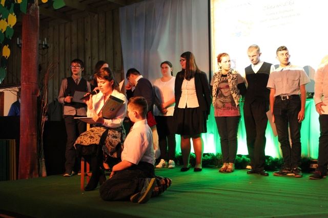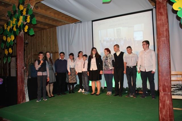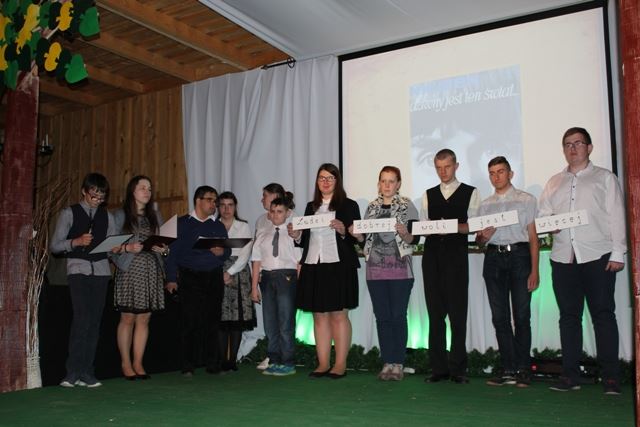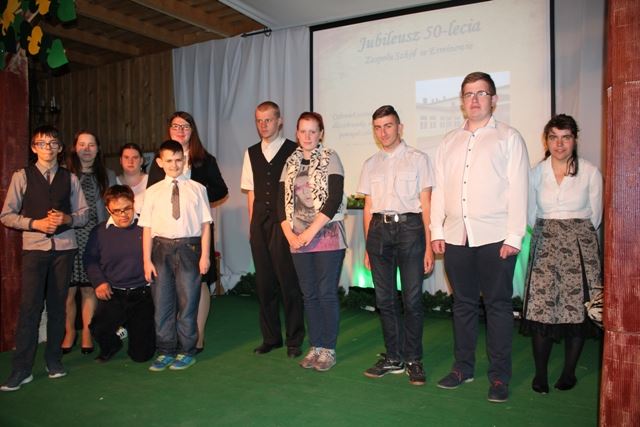 W tym roku nasz zespół zaprezentował program artystyczny przygotowany z okazji jubileuszu 50-lecia Zespołu Szkół Specjalnych w Erminowie. Program ten, zatytułowany „Krótka historia wychowania”, zawiera nasze refleksje o znaczeniu szkolnictwa specjalnego. Snując te refleksje zwróciliśmy uwagę na to, jak historia naszej szkoły splata się z historią FeT-y – uczestniczymy w tym festiwalu już od 15 lat! Zawsze jest to dla nas ważne wydarzenie i wielka radość dla uczniów, którzy mogą przedstawić na scenie swoje zdolności aktorskie, realizować swoje pasje i marzenia. Dziękując za te wspólne lata przygotowaliśmy z myślą o Organizatorach festiwalu specjalną prezentację, w której wykorzystaliśmy przechowywane przez nas pieczołowicie dyplomy, fotografie, zapiski z kronik szkolnych. Dołączyliśmy ją do naszego występu z podkładem muzycznym – tradycyjnie graną na akordeonie melodią hymnu FeT-y.