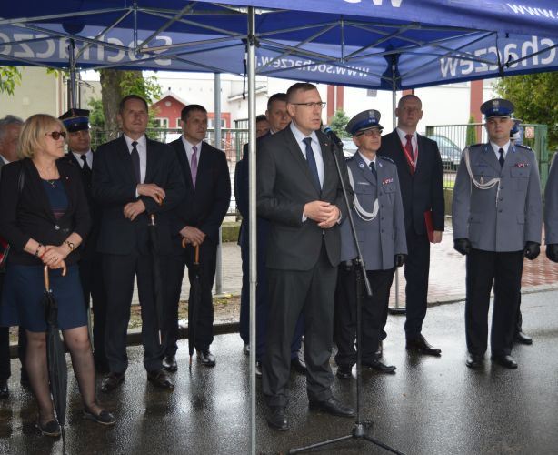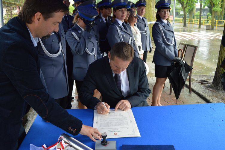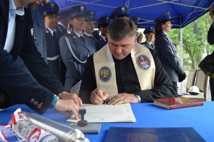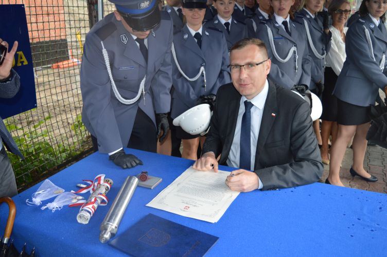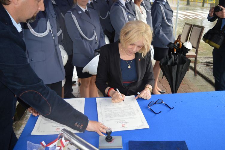 Kapsułę poświęcił kapelan sochaczewskich policjantów, a delegacja złożona z Sekretarza Stanu w Kancelarii Prezesa Rady Ministrów, Wicewojewody Mazowieckiego, I Zastępcy Komendanta Wojewódzkiego Policji zs. w Radomiu, Komendanta Powiatowego Policji w Sochaczewie, I Zastępcy Komendanta Powiatowego Policji w Sochaczewie, Kapelana Policji, Starosty Sochaczewskiego, Burmistrza Miasta Sochaczew oraz wykonawcy dokonała uroczystego jej wmurowania w fundament nowej siedziby.