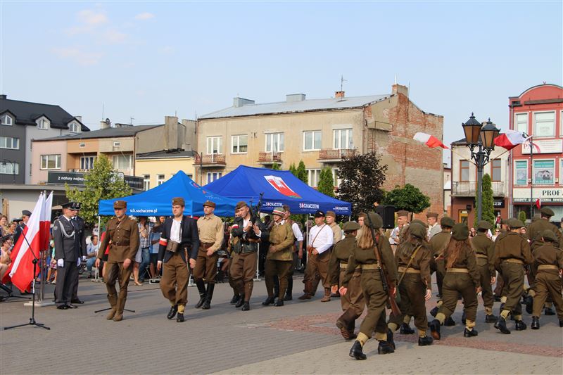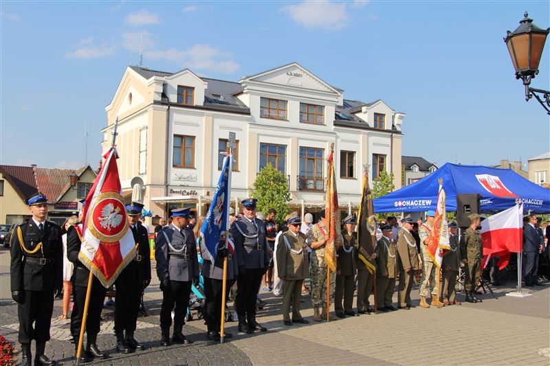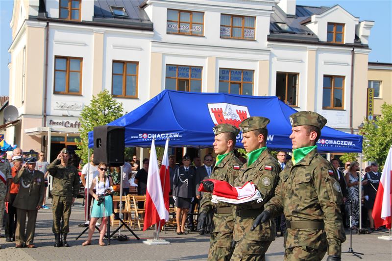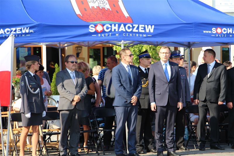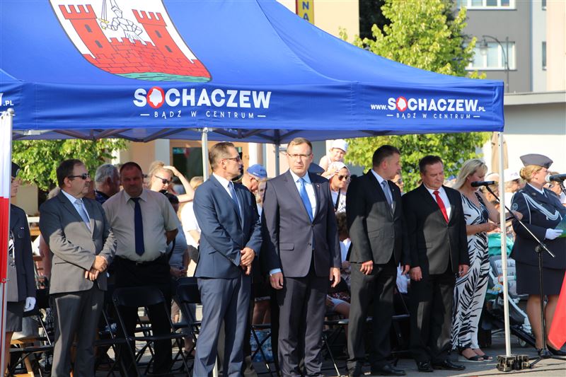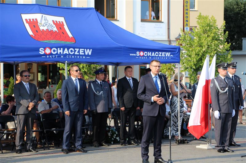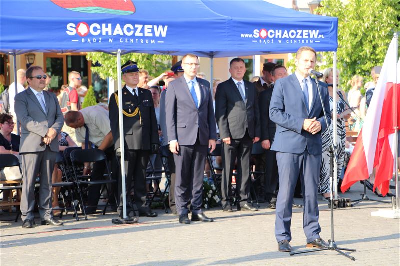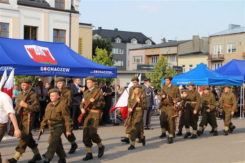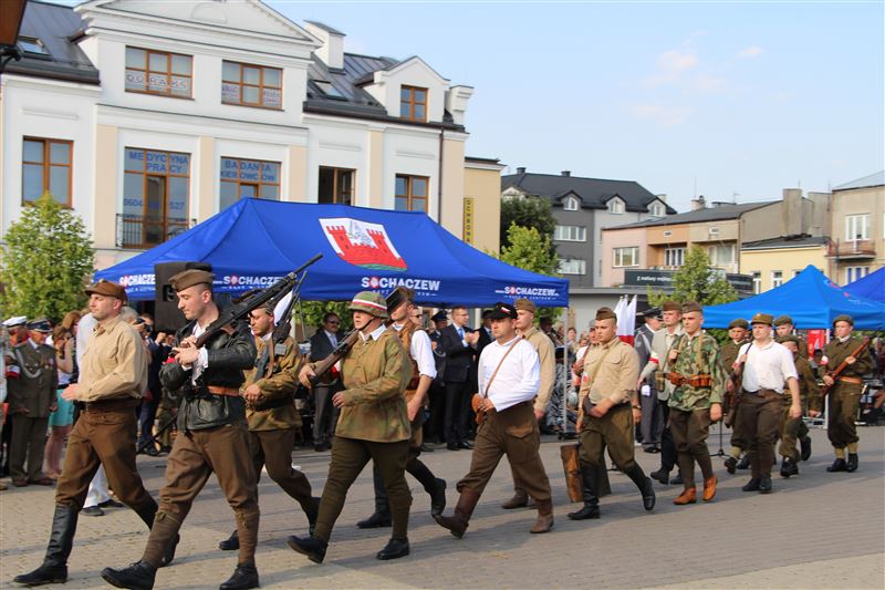 O 16.30 m.in. władze samorządowe miasta – Piotr Osiecki, burmistrz Sochaczewa, Dariusz Dobrowolski, wiceburmistrz, Sylwester Kaczmarek, przewodniczący Rady Miejskiej, i powiatu – Tadeusz Głuchowski, wicestarosta wraz z Maciejem Małeckim, posłem na Sejm RP w asyście służb mundurowych i rekonstruktorów - złożyły kwiaty w kwaterze żołnierzy Armii Krajowej na cmentarzu wojskowym w Trojanowie. Natomiast główna część uroczystości odbyła się na pl. Kościuszki. Był koncert Sochaczewskiej Orkiestry Dętej, utwory patriotyczne wykonała Orkiestra Wojskowa z Siedlec. Nie mogło zabraknąć pocztów sztandarowych, oprawy jednostki wojskowej z Bielic. Był dźwięk syren, Mazurek Dąbrowskiego, wybrzmiała salwa honorowa i odczytano apel pamięci, na maszt zaś wciągnięto flagę Polski. Wystąpienia okolicznościowe wygłosili Piotr Osiecki, burmistrz Sochaczewa oraz Maciej Małecki, poseł na Sejm RP.